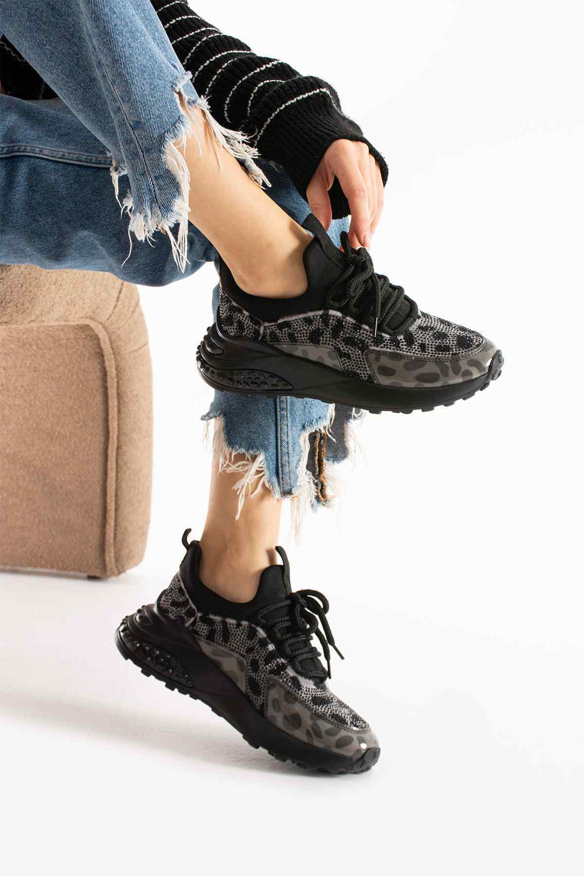 kadın siyah leopar Sneaker spor ayakkabı kadın siyah leopar Sneaker spor ayakkabı 3555 40