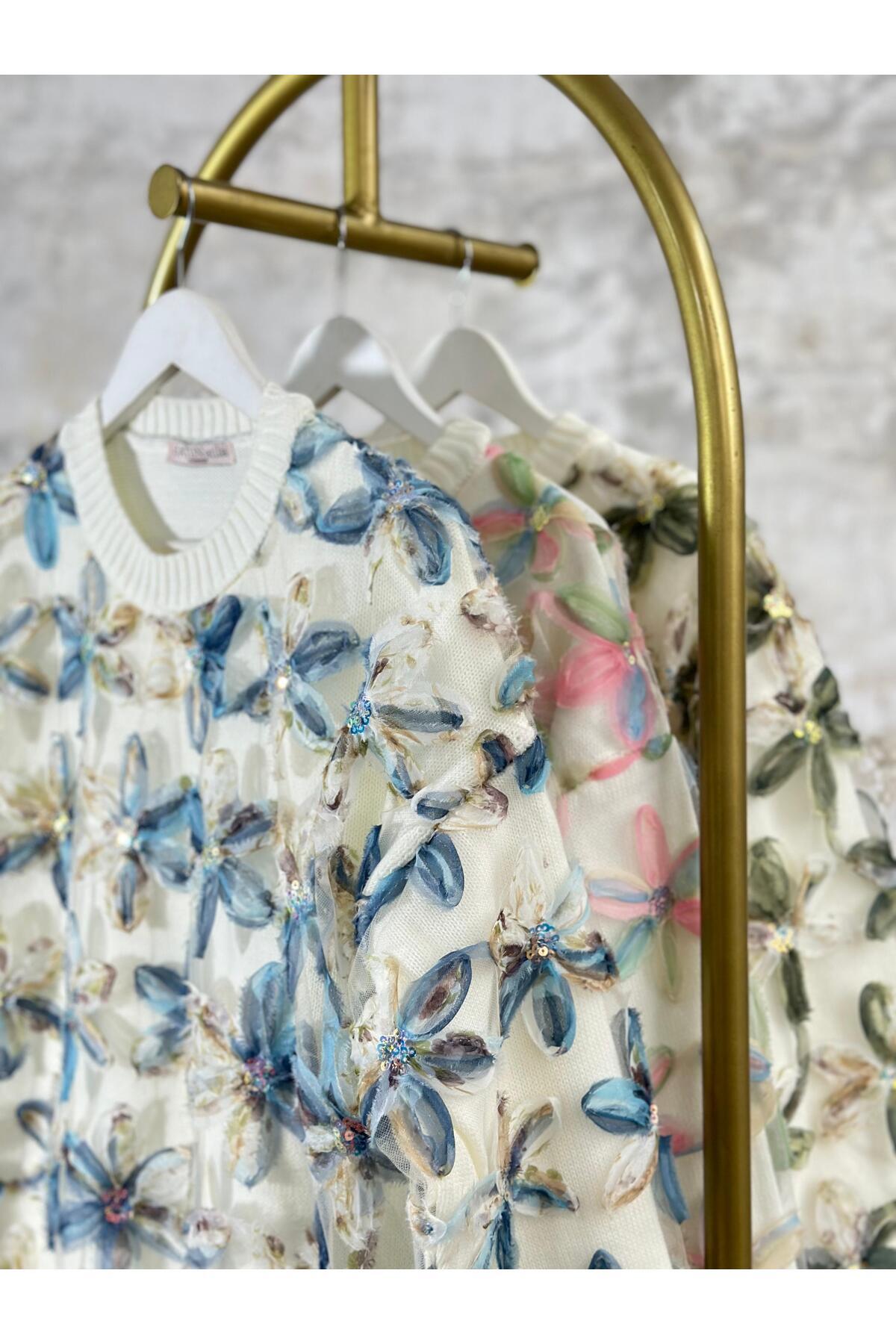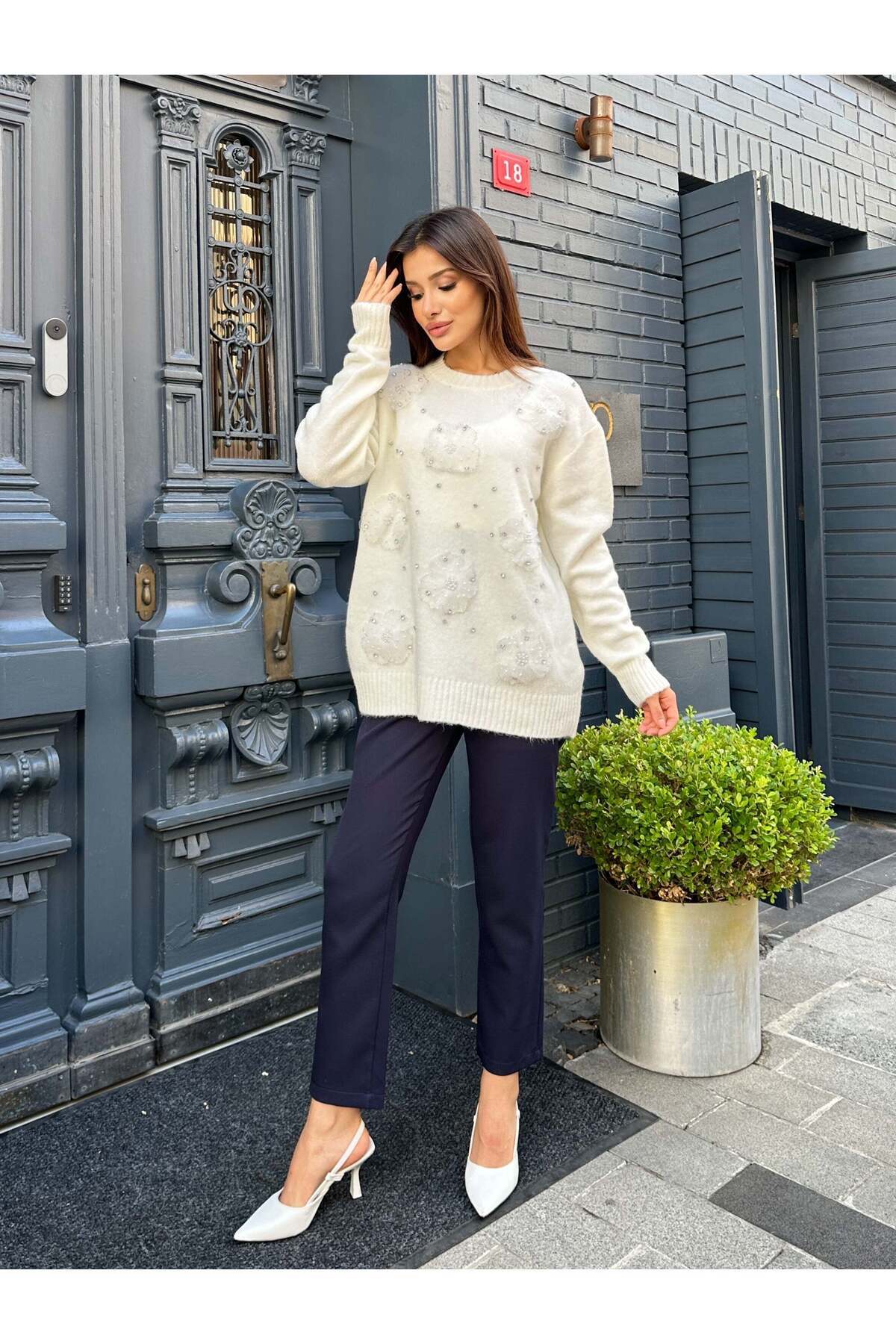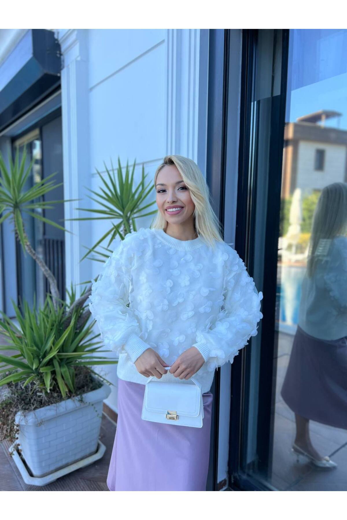 HatunAtila Organze Çiçekli Tüllü Kazak 5132 - Pembe HatunAtila Organze Çiçekli Tüllü Kazak 5132 - Pembe Standart