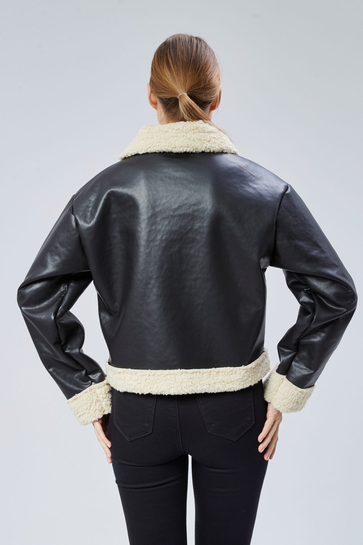 Kadın İçi Kürklü Deri Şık Mont Kadın İçi Kürklü Deri Şık Mont NSA442 L