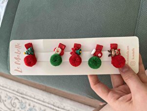 Kırmızı Ponponlu Yılbaşı 5'li Kız Çocuk Toka Set Kırmızı Ponponlu Yılbaşı 5'li Kız Çocuk Toka Set LM1786 تک سایز