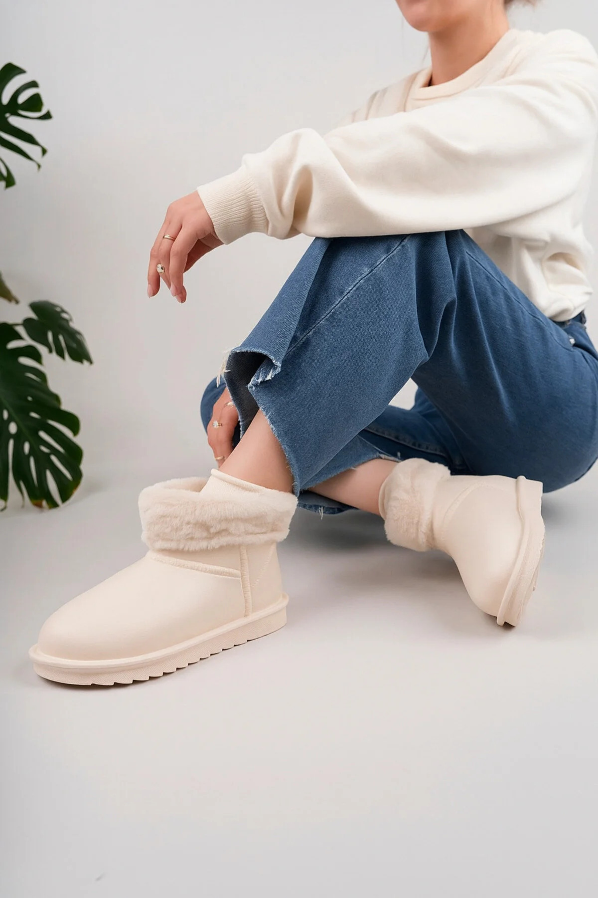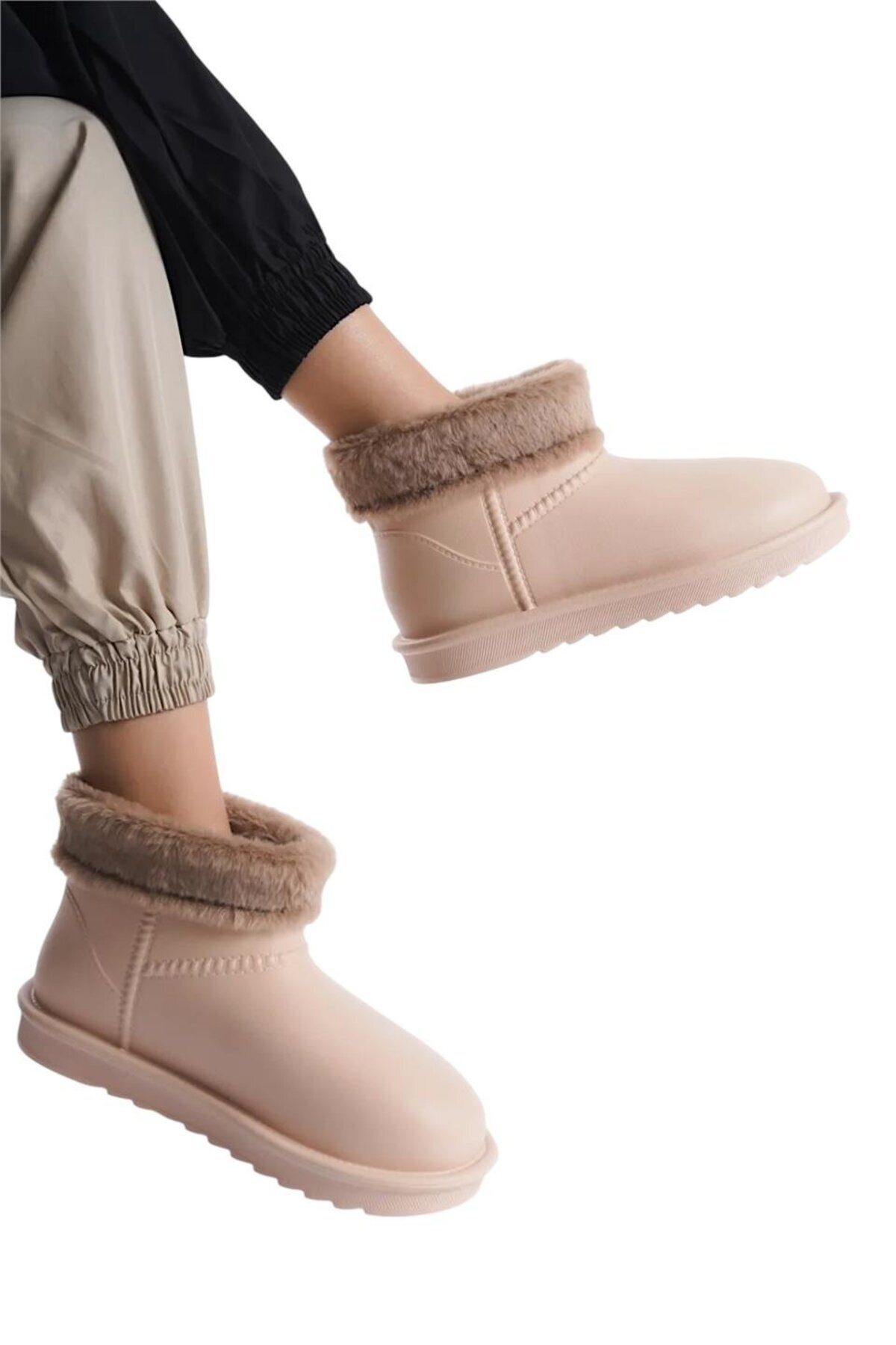 Yuvarlak Burun Kadın Kürklü Kısa Yağmur Botu BEJ Yuvarlak Burun Kadın Kürklü Kısa Yağmur Botu BEJ 7405 40