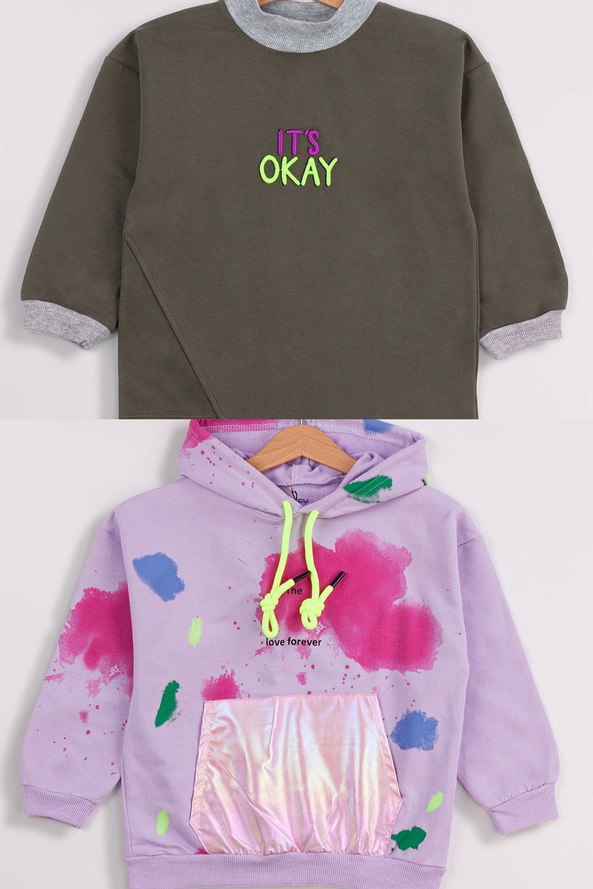 Kız Çocuk 2'li Paket Basic Sweatshirt Kız Çocuk 2'li Paket Basic Sweatshirt 17053023188 8-9 Yaş