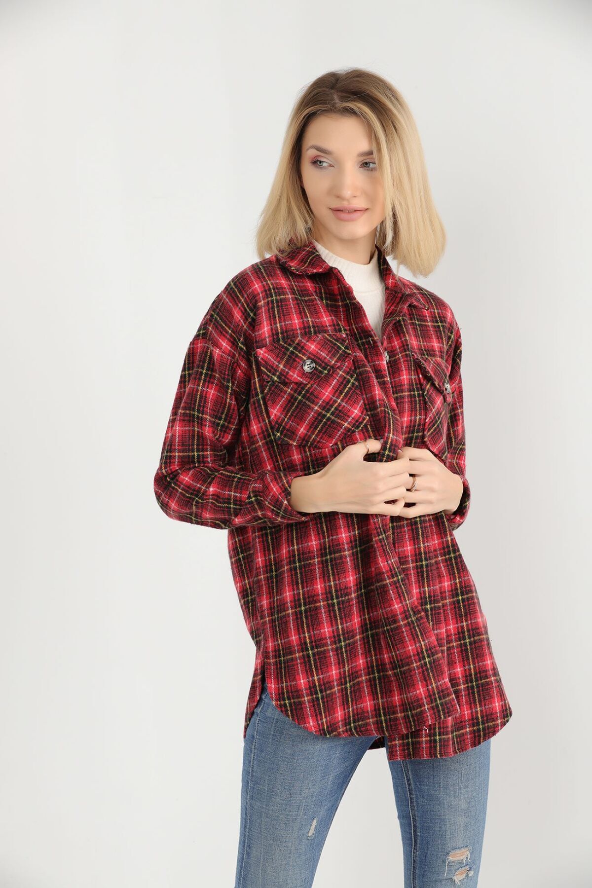 Kadın Çift Cep Düşük Kırmızı Omuz Oduncu Gömlek Kadın Çift Cep Düşük Kırmızı Omuz Oduncu Gömlek SL-1465SLY 46
