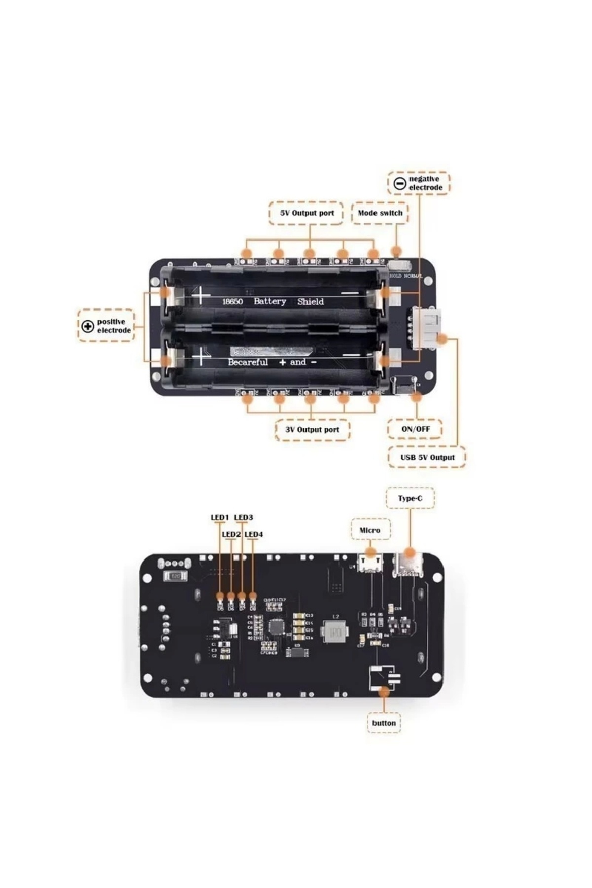 2x 18650 Pil Şarj Kartı V8 Battery Shield Lityum Li-On Powerbank 2x 18650 Pil Şarj Kartı V8 Battery Shield Lityum Li-On Powerbank Battery Shield V8 تک سایز