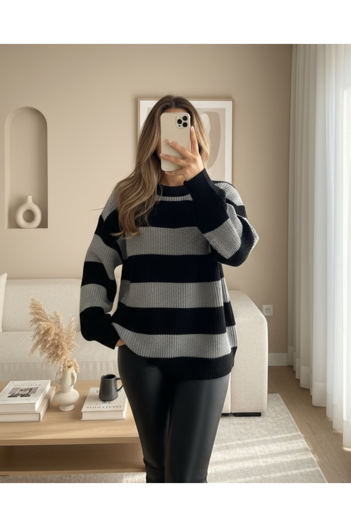 Şeritli Triko Kazak Şeritli Triko Kazak aten39 Standart
