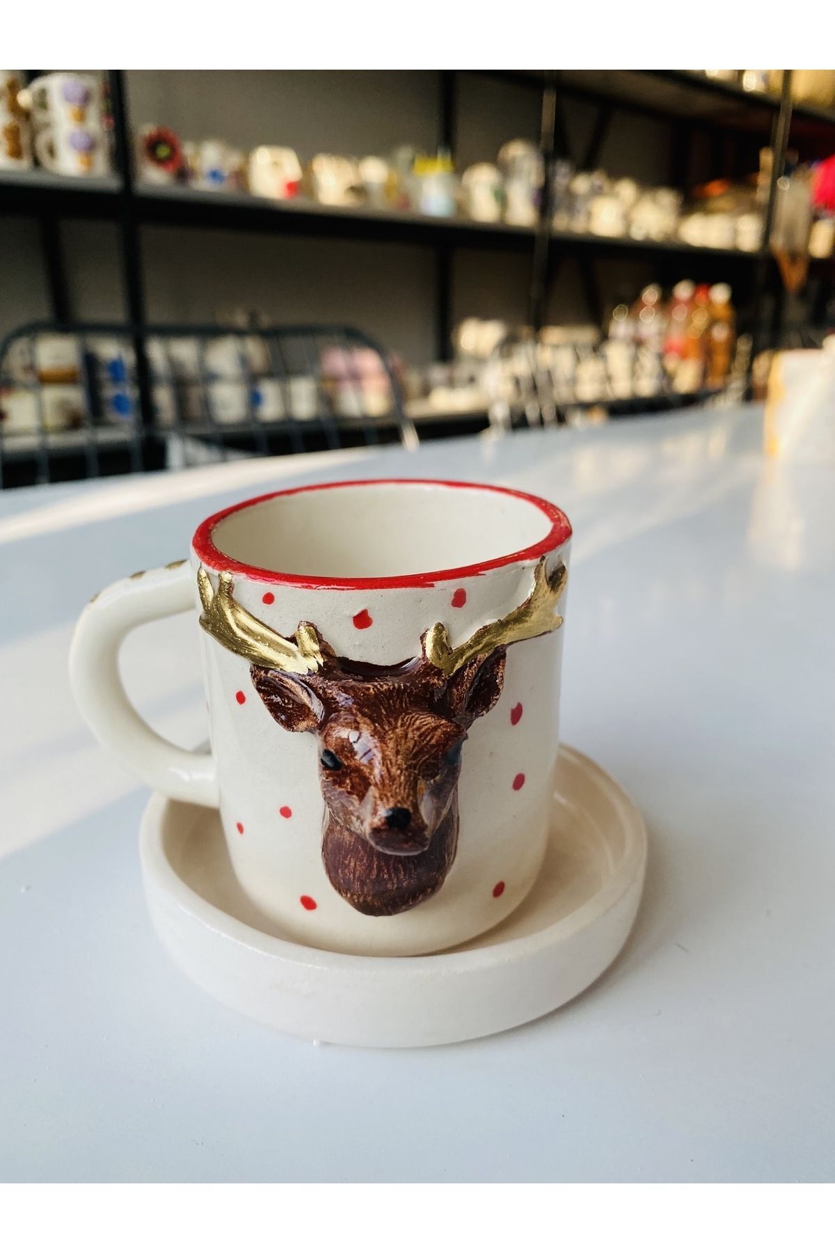 Yılbaşına Özel Geyikli Kırmızı Kulplu Lüks Kupa Yılbaşına Özel Geyikli Kırmızı Kulplu Lüks Kupa yılbaşı4 تک سایز