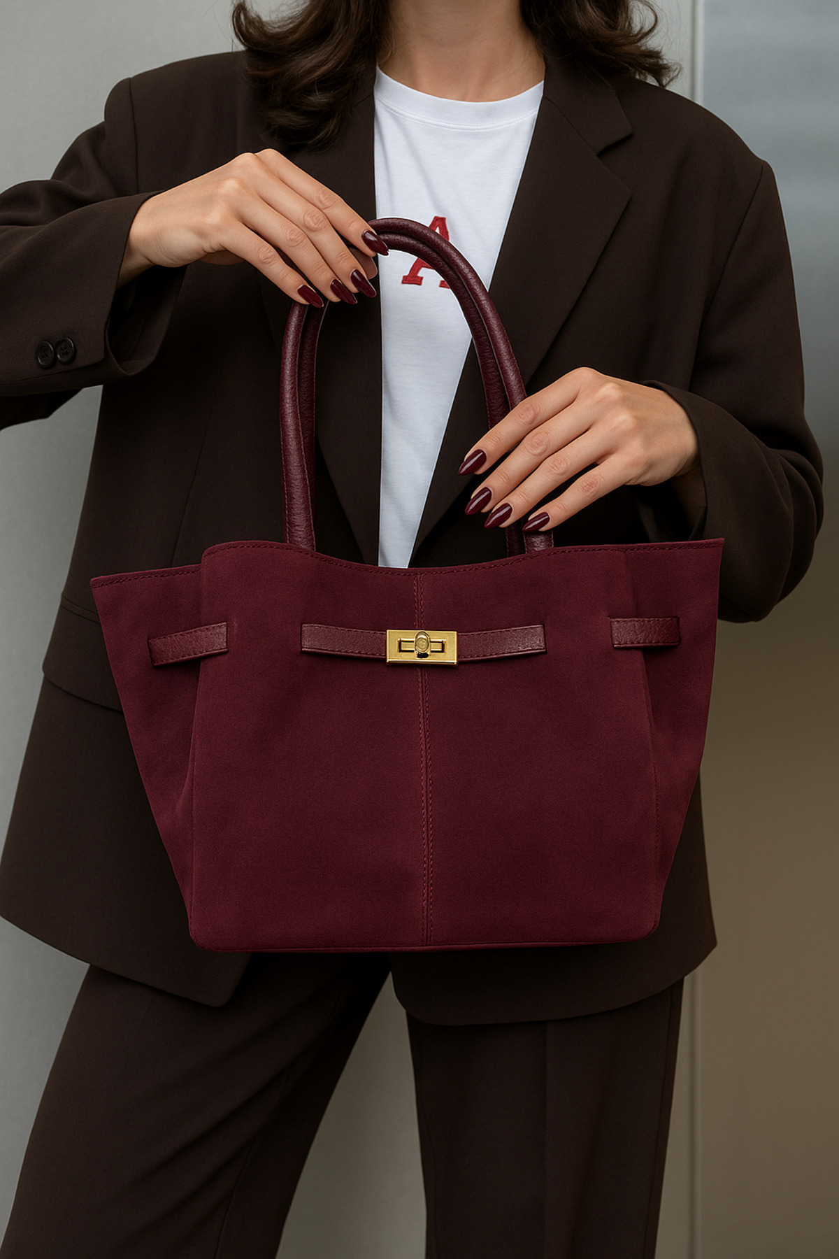 Kadın Süet Deri Mıknatıs Kapamalı Kilit Detaylı El ve Omuz Çantası Kadın Süet Deri Mıknatıs Kapamalı Kilit Detaylı El ve Omuz Çantası KRSCNT209 تک سایز