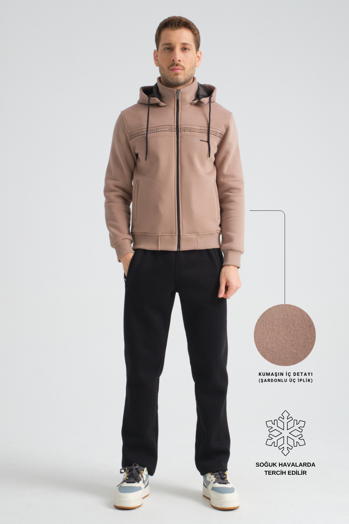 Premium Haki Kışlık Erkek Eşofman Takımı Regular Kapüşonlu Premium Haki Kışlık Erkek Eşofman Takımı Regular Kapüşonlu 30039 3XL