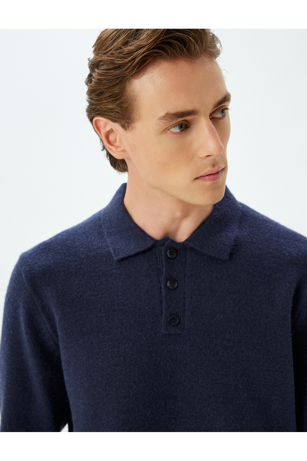 Polo Yaka Kazak Triko Basic Uzun Kollu Düğmeli Polo Yaka Kazak Triko Basic Uzun Kollu Düğmeli 5WAM70027HT XL
