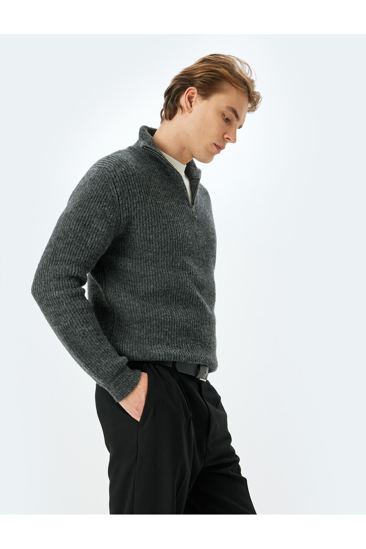 Triko Kazak Yarım Fermuarlı Yaka Basic Uzun Kollu Triko Kazak Yarım Fermuarlı Yaka Basic Uzun Kollu 5WAM70028HT XL