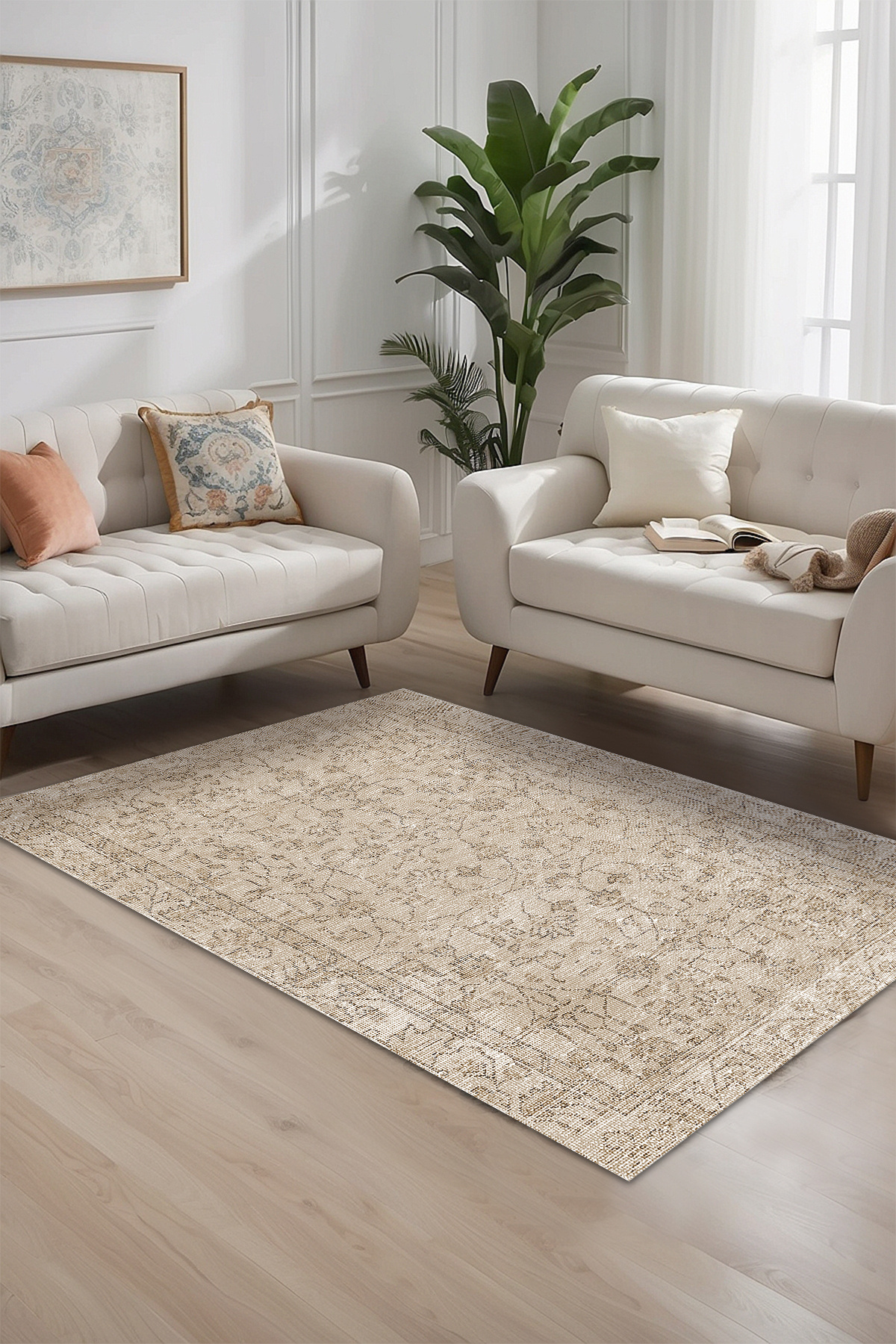 Monty Elit Vintage Desenli Pamuk Tabanlı Yıkanabilen Kaydırmaz Antibakteriyel Şönil Salon Halısı Monty Elit Vintage Desenli Pamuk Tabanlı Yıkanabilen Kaydırmaz Antibakteriyel Şönil Salon Halısı MONTY 200 x 200