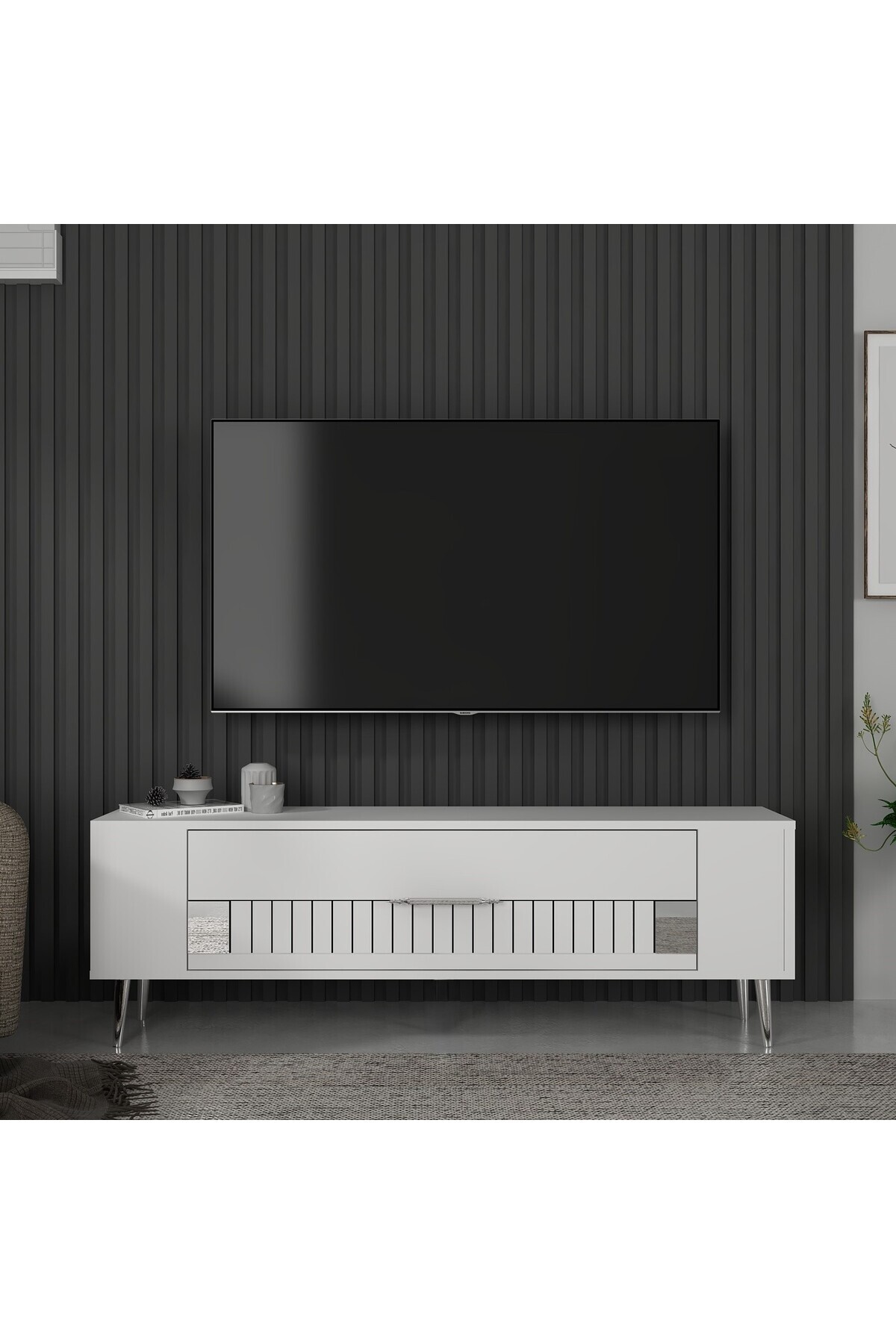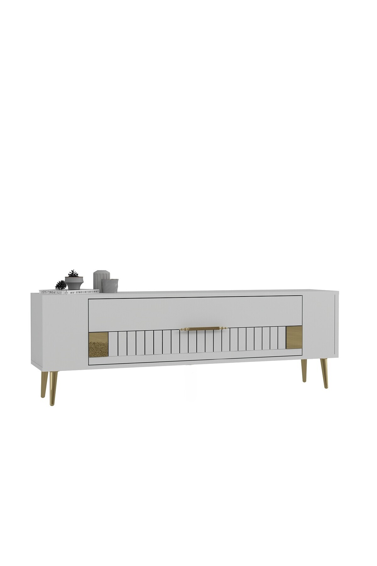 Retrolp4ct Tv Sehpası Beyaz-altın Retrolp4ct Tv Sehpası Beyaz-altın TV1249CT تک سایز