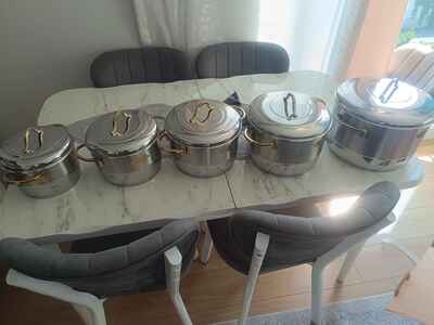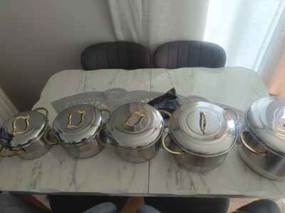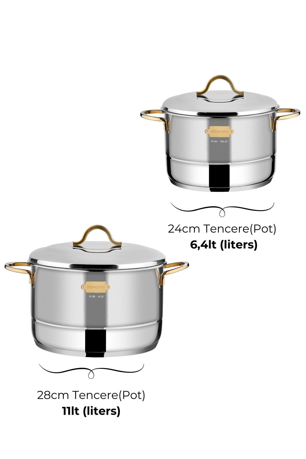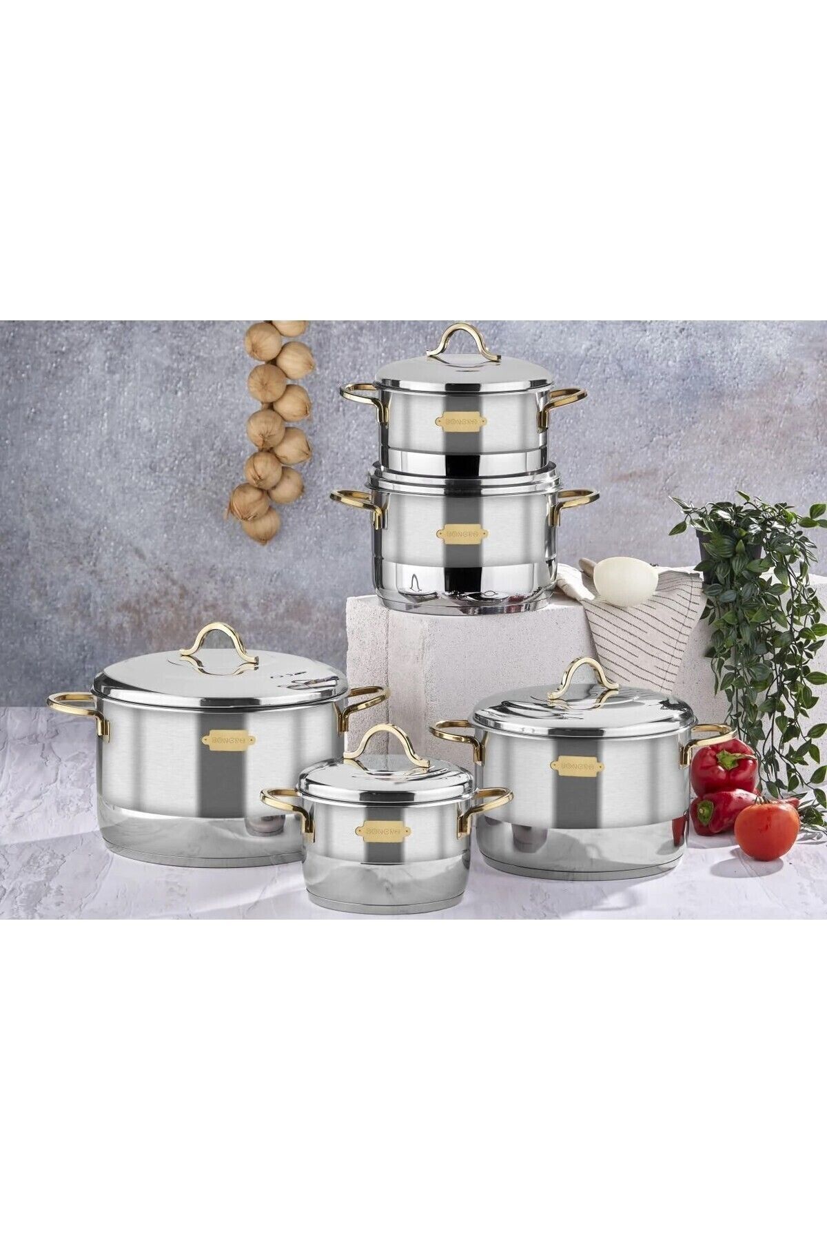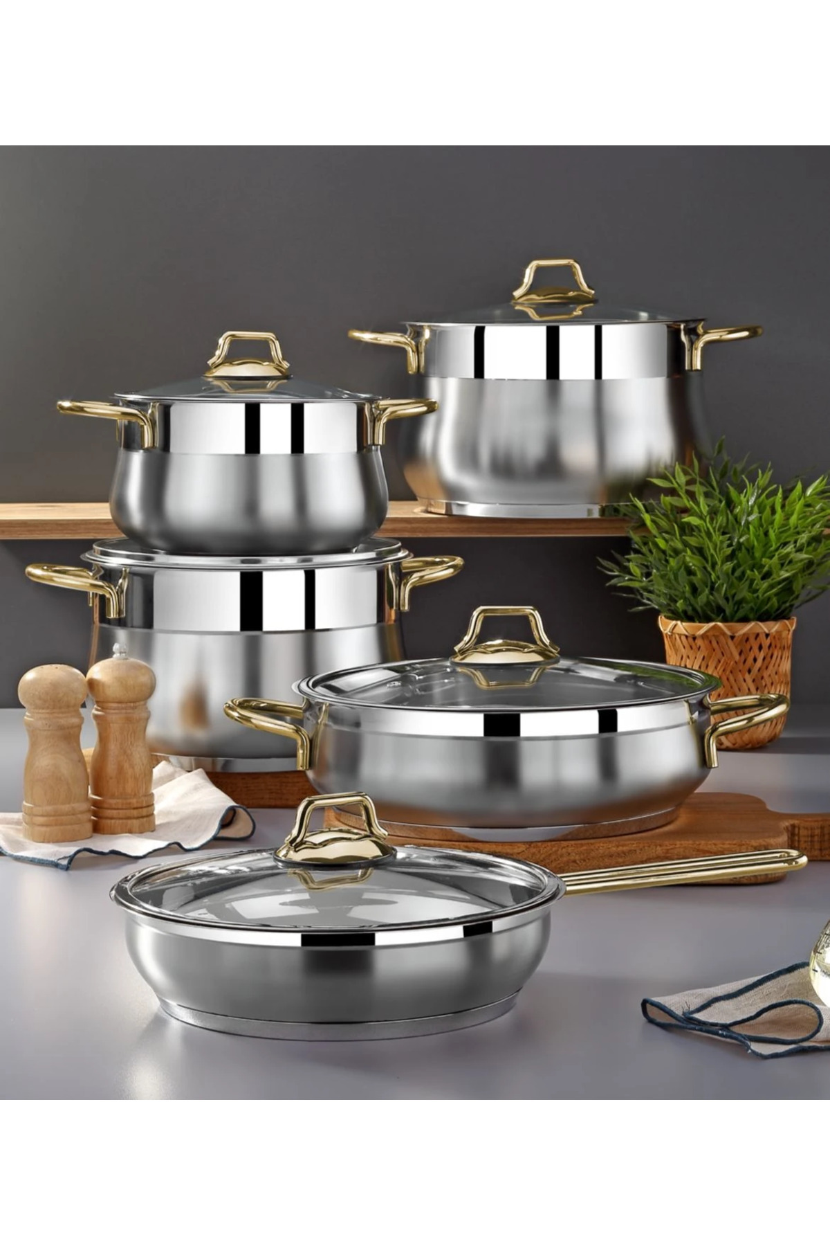 Nirvana 10 Parça Gold Detaylı Çelik Tencere Seti Nirvana 10 Parça Gold Detaylı Çelik Tencere Seti TB3400 تک سایز