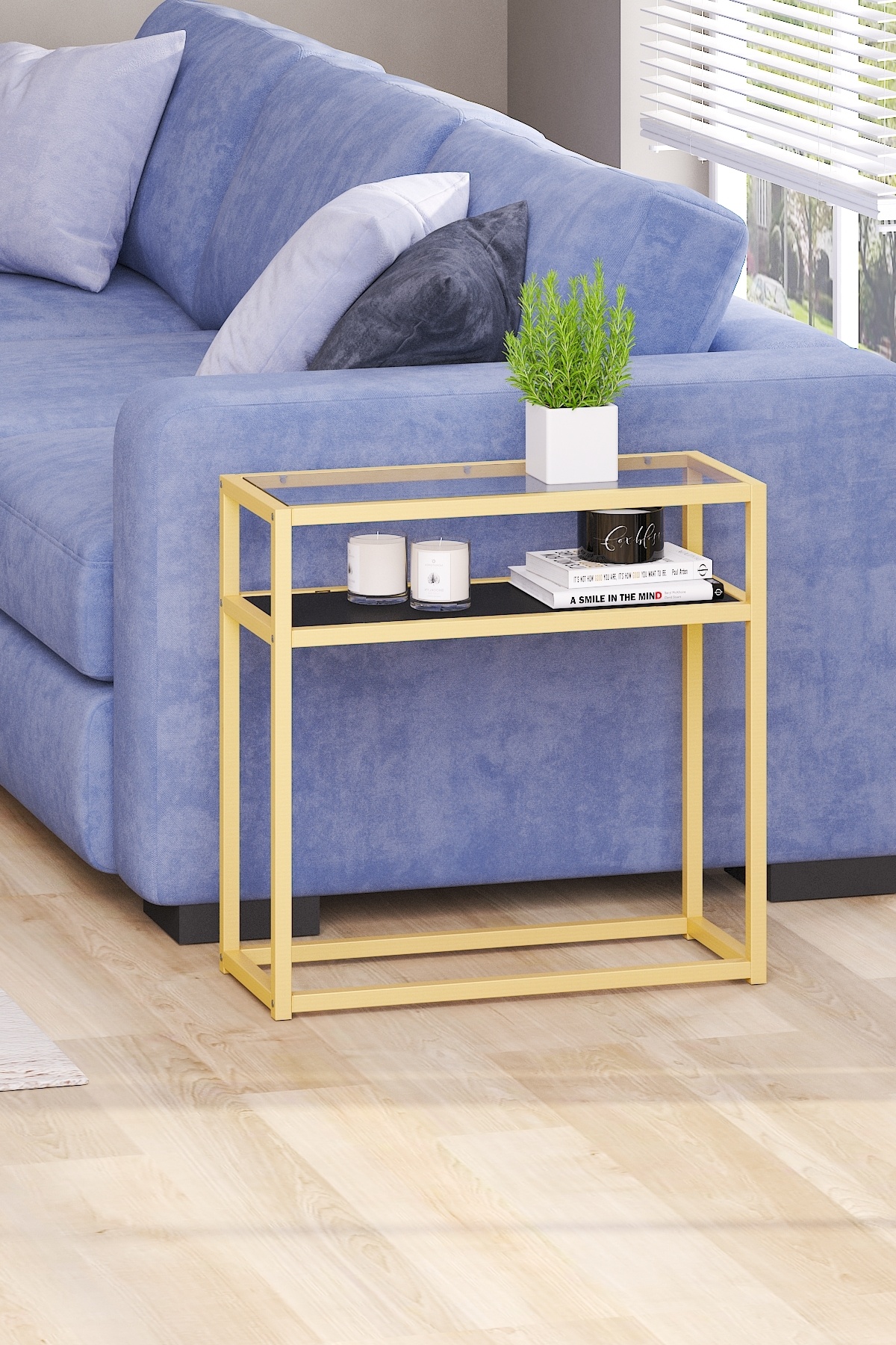 Metal İskeletli Siyah-Gold Renk Temper Camlı 2 Katlı Dikdörtgen Yan Sehpa Koltuk Sehpası Metal İskeletli Siyah-Gold Renk Temper Camlı 2 Katlı Dikdörtgen Yan Sehpa Koltuk Sehpası 666 تک سایز