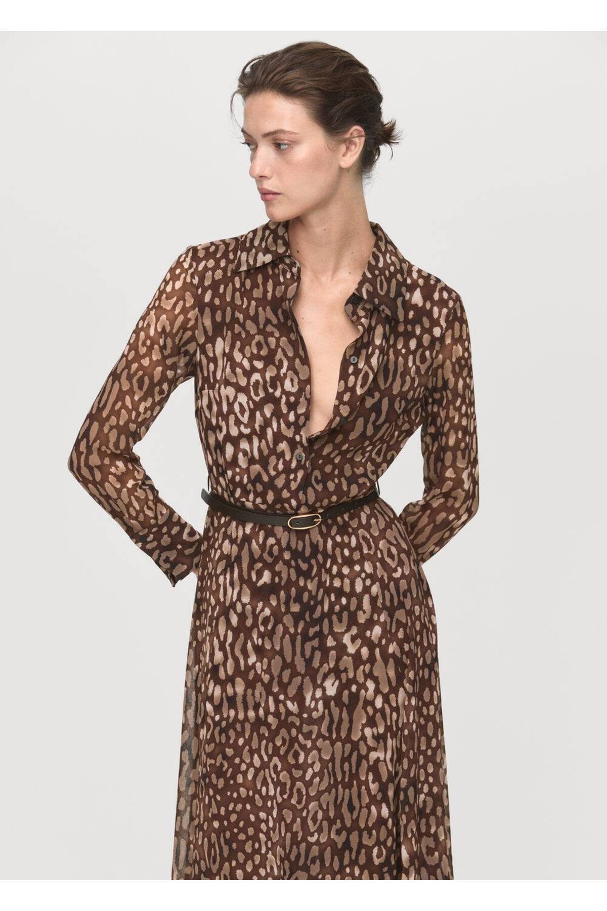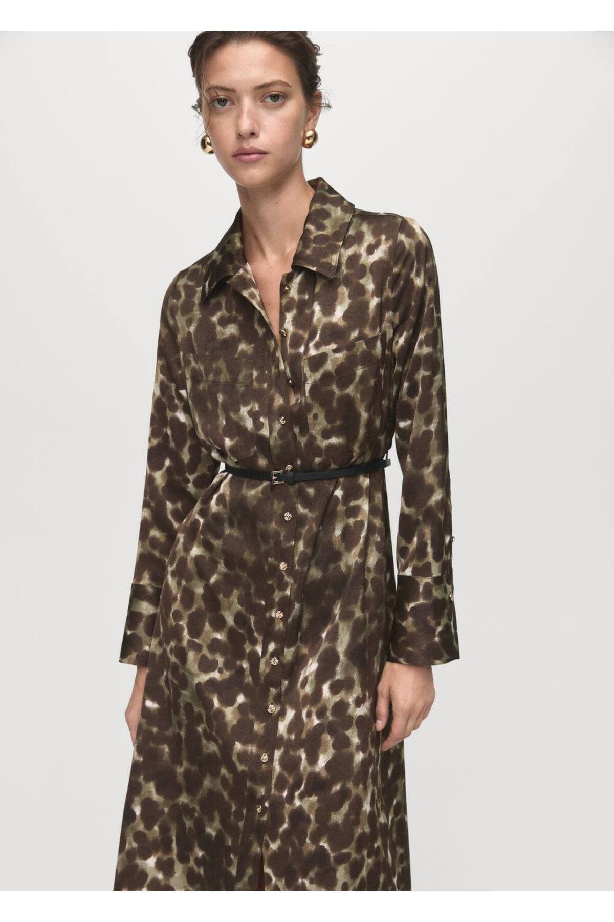 Eteği Süs Düğmeli Büzgülü Elbise -Athena Desenli Eteği Süs Düğmeli Büzgülü Elbise -Athena Desenli 24FW111008 L
