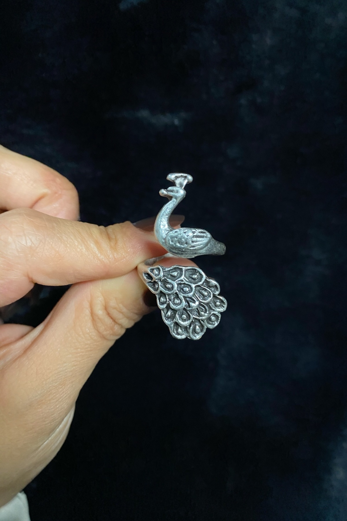 Antik Eskitme Gümüş Kaplama Tavus Kuşu Ayarlanabilir Yüzük Antik Eskitme Gümüş Kaplama Tavus Kuşu Ayarlanabilir Yüzük YZC23 0
