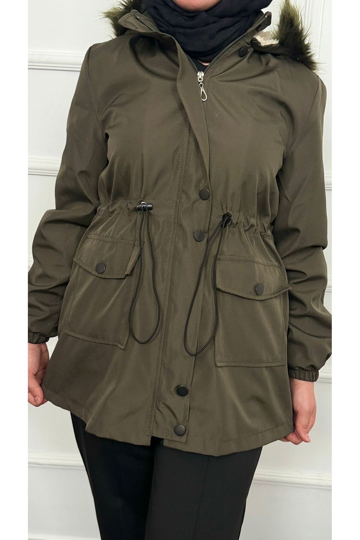 Kapşonlu Beli Lastikli İçi Kürklü Bondit Mont RC5029 Kapşonlu Beli Lastikli İçi Kürklü Bondit Mont RC5029 42