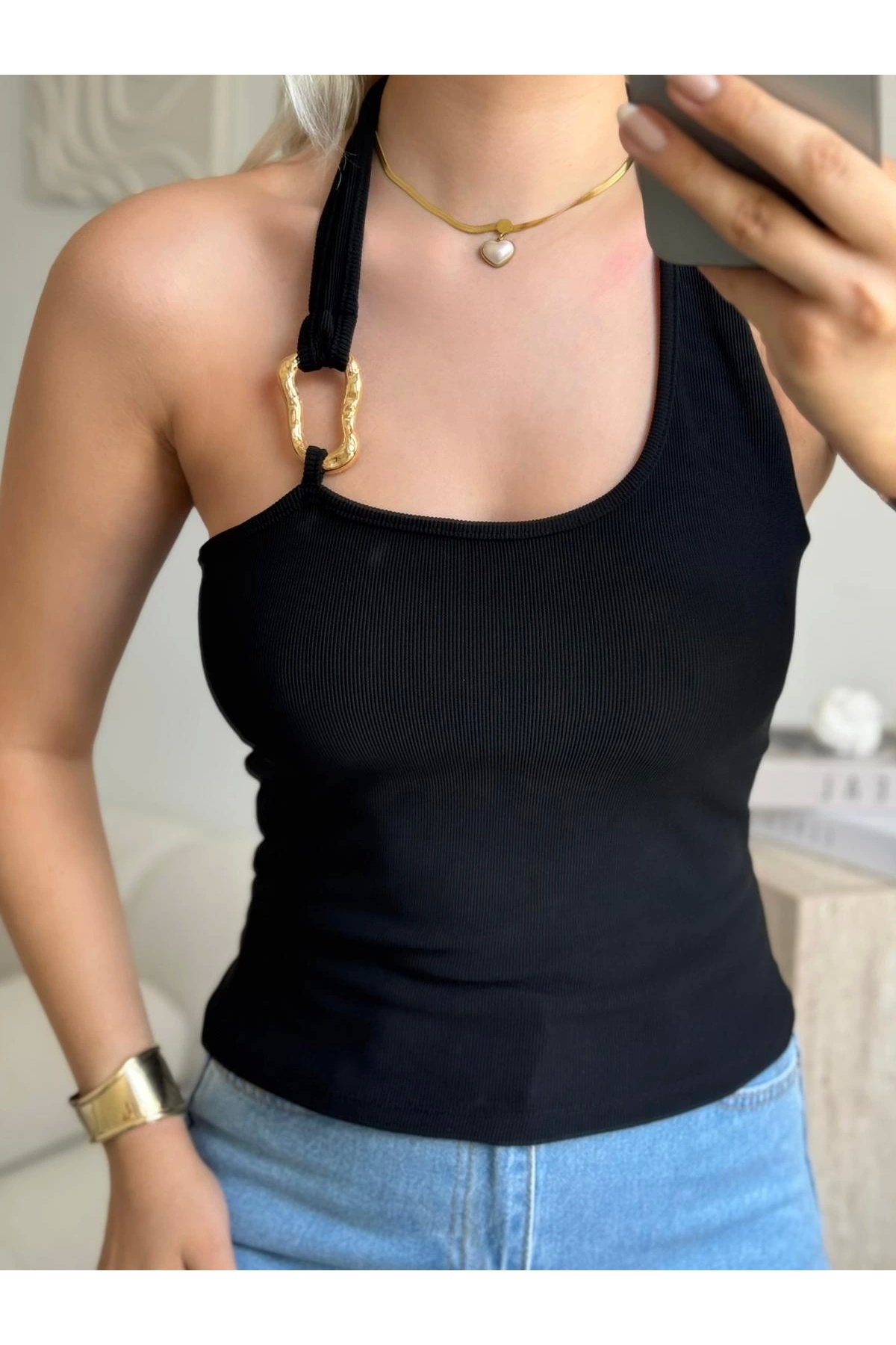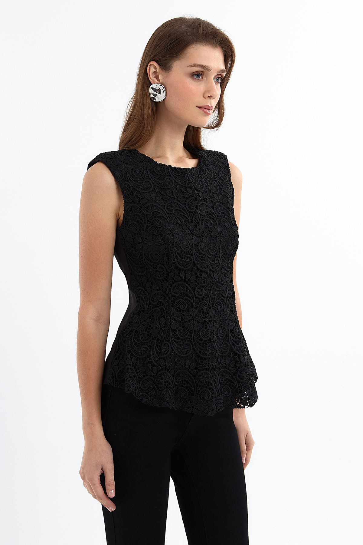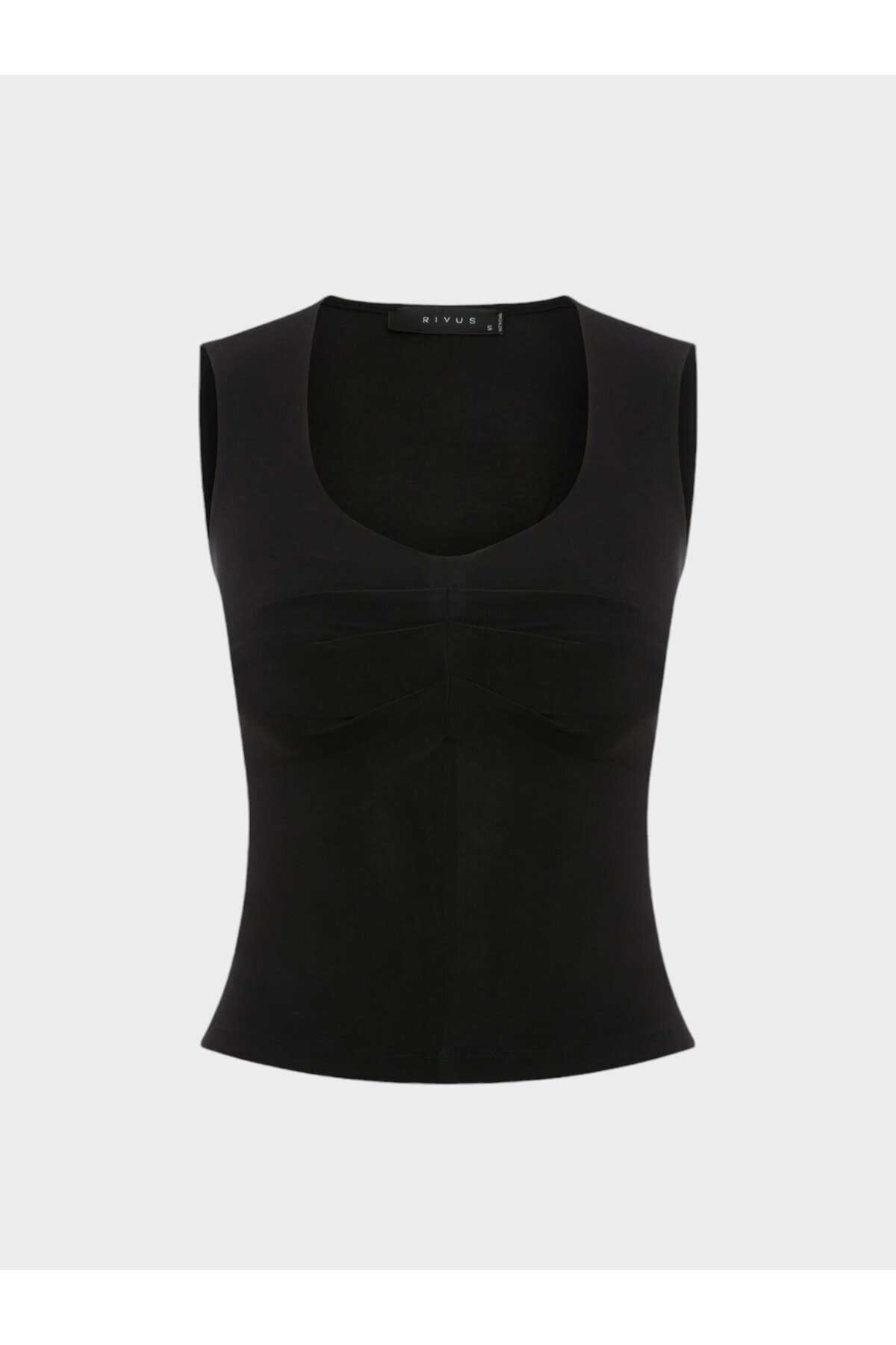 Pileli Yuvarlak Yakalı Sıfır Kollu Bluz - Siyah Pileli Yuvarlak Yakalı Sıfır Kollu Bluz - Siyah 24SL109008 L