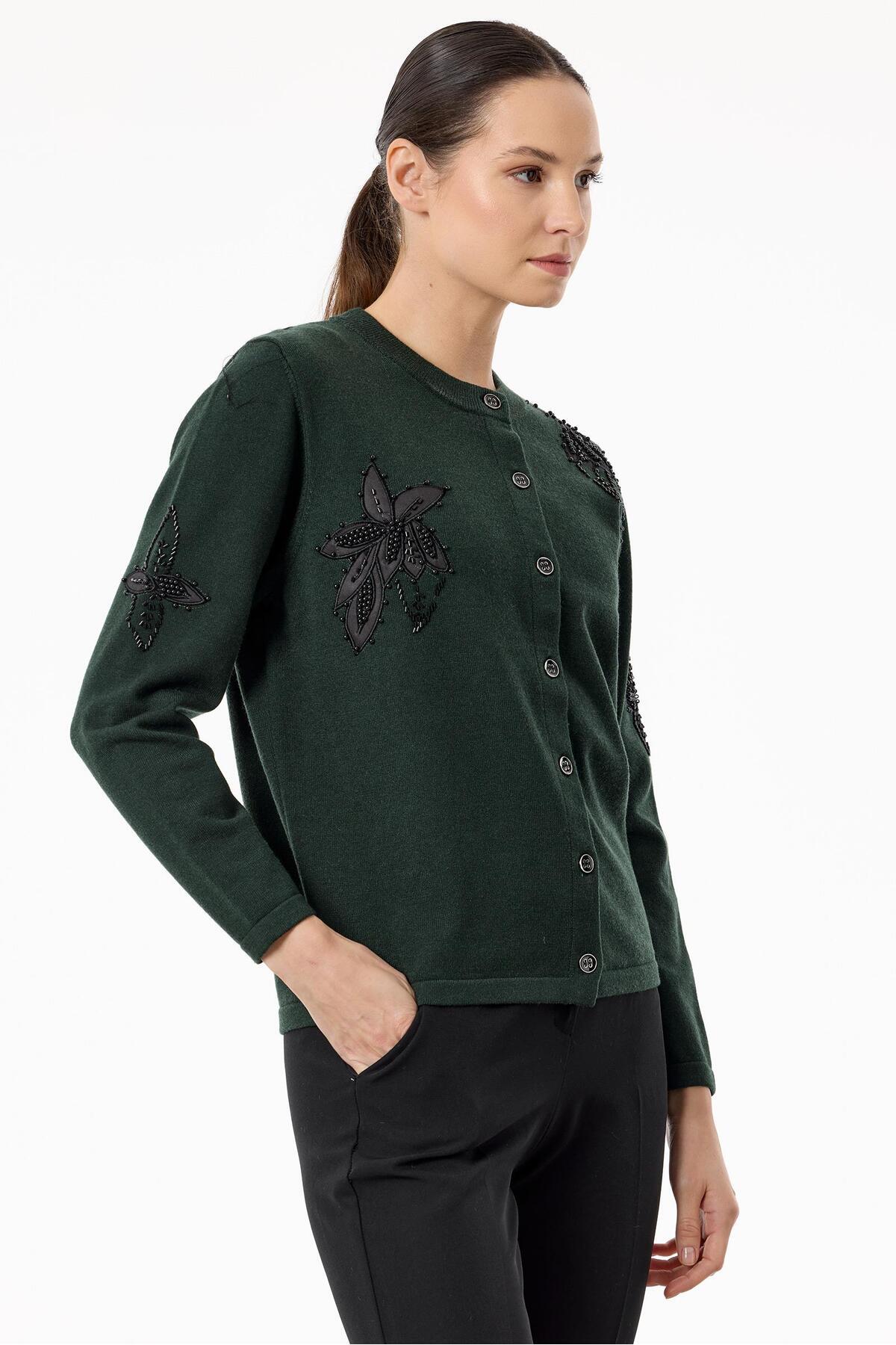 Çiçek Aplikeli Triko Hırka YEŞİL Çiçek Aplikeli Triko Hırka YEŞİL HRK.21746.1 2