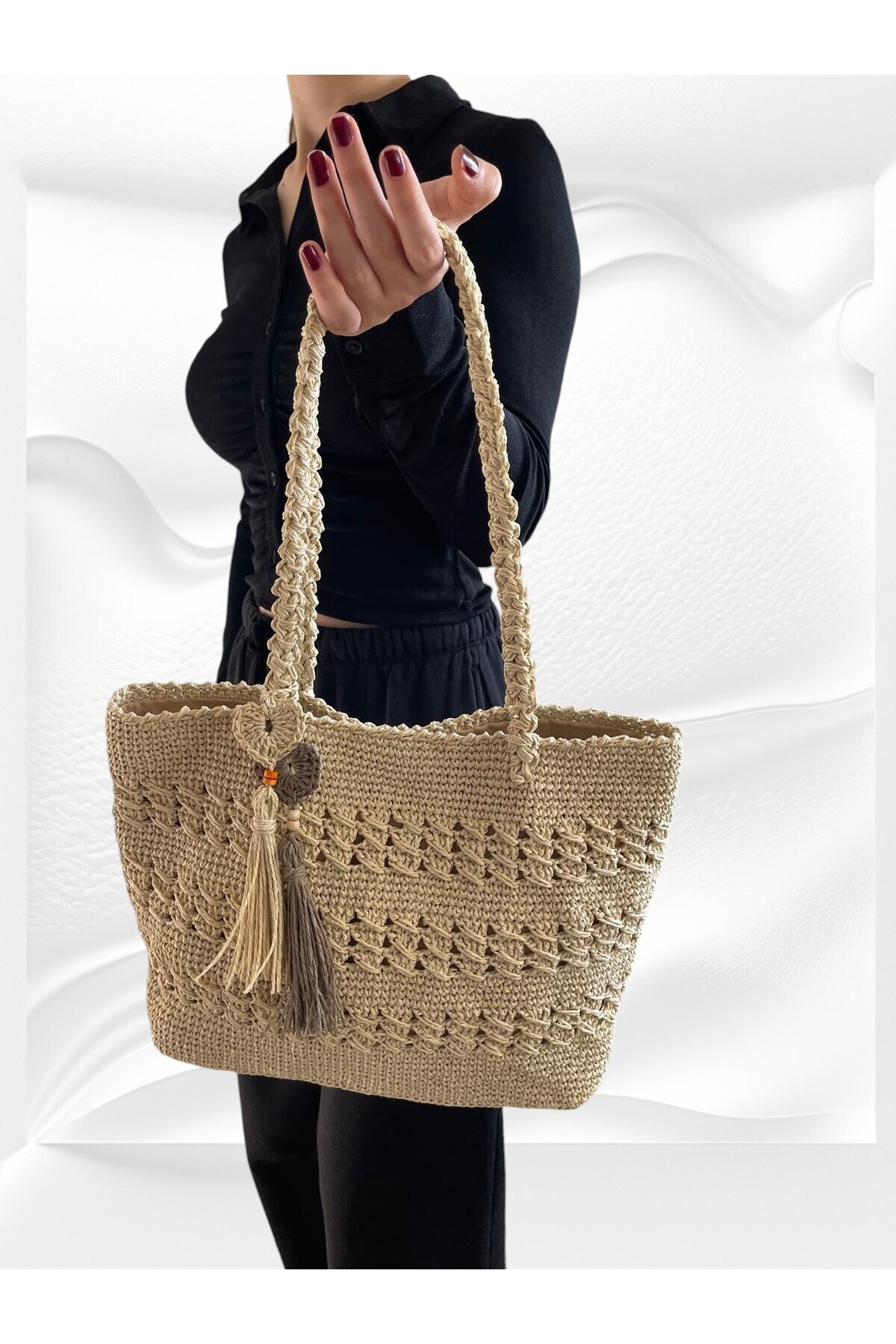 El Yapımı Kağıt İp Örgü Günlük Askılı Omuz Çantası Astarlı, Cepli, Çıtçıtlı El Yapımı Kağıt İp Örgü Günlük Askılı Omuz Çantası Astarlı, Cepli, Çıtçıtlı SRP014 35 x 25