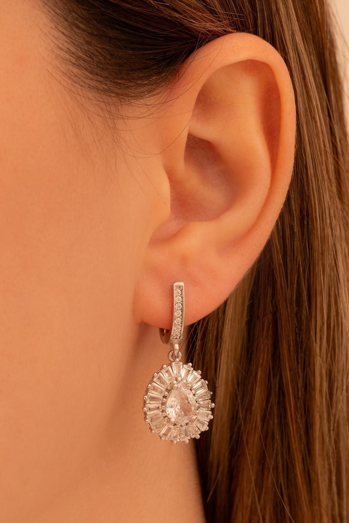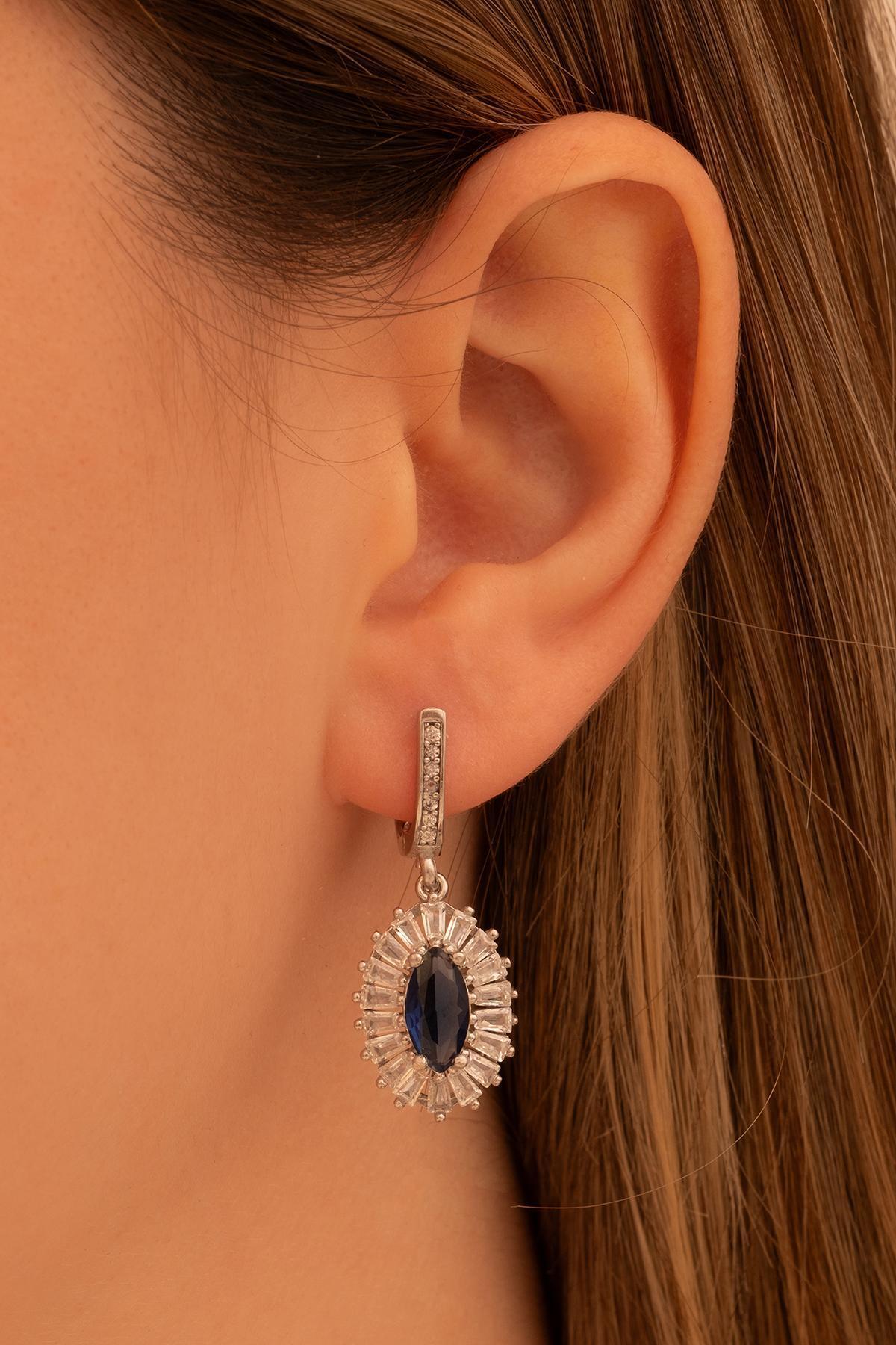 Kadın Gümüş Küpe - Kalp Model Mavi Topaz Taşlı Baget Süslemeli Rodyumlu Kadın Küpe Kadın Gümüş Küpe - Kalp Model Mavi Topaz Taşlı Baget Süslemeli Rodyumlu Kadın Küpe ssk0002 تک سایز
