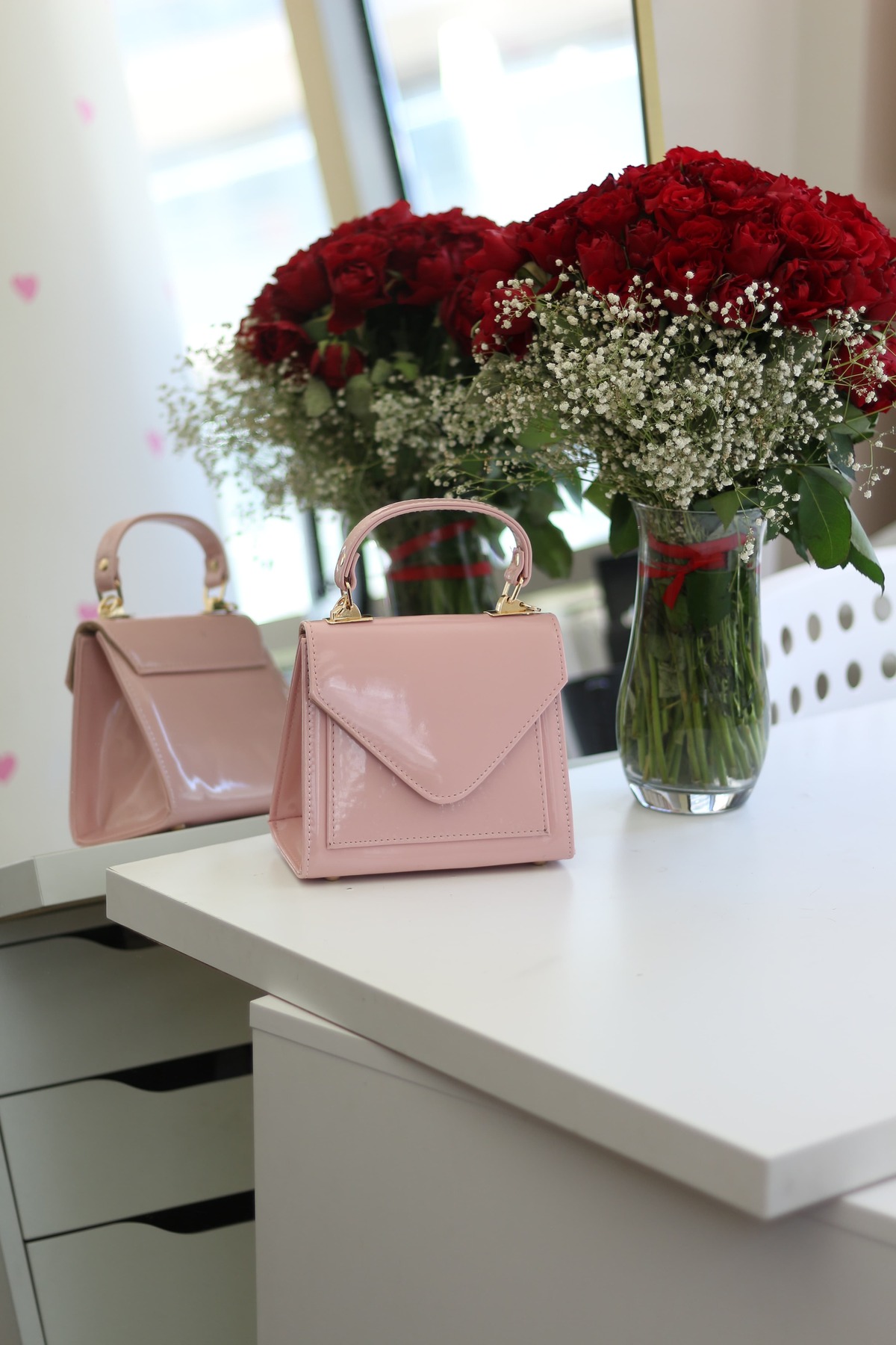 Kadın Pudra Rugan Toka Detaylı Zincirli El Omuz Çantası Kadın Pudra Rugan Toka Detaylı Zincirli El Omuz Çantası MBOOO703 تک سایز