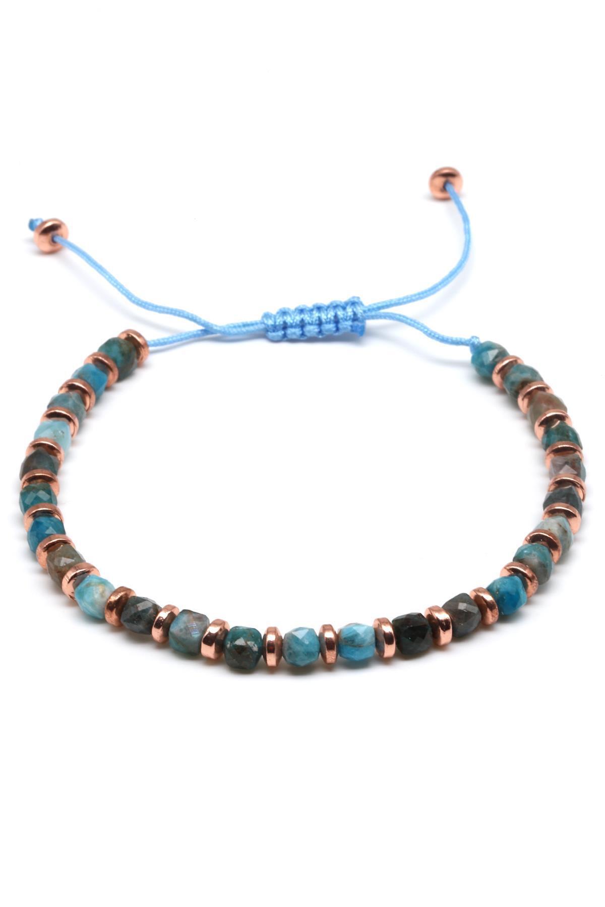 Apatit Doğal Taş Makrome Örme Bileklik Fasetli Küp Kesim Apatit Doğal Taş Makrome Örme Bileklik Fasetli Küp Kesim BMK-501 تک سایز