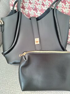 YAVRU ÇANTA EKSTRALI ÖNÜ KİLİT DETAYLI SİYAH KADIN OMUZ ÇANTASI YAVRU ÇANTA EKSTRALI ÖNÜ KİLİT DETAYLI SİYAH KADIN OMUZ ÇANTASI KİTFİT 30 x 25