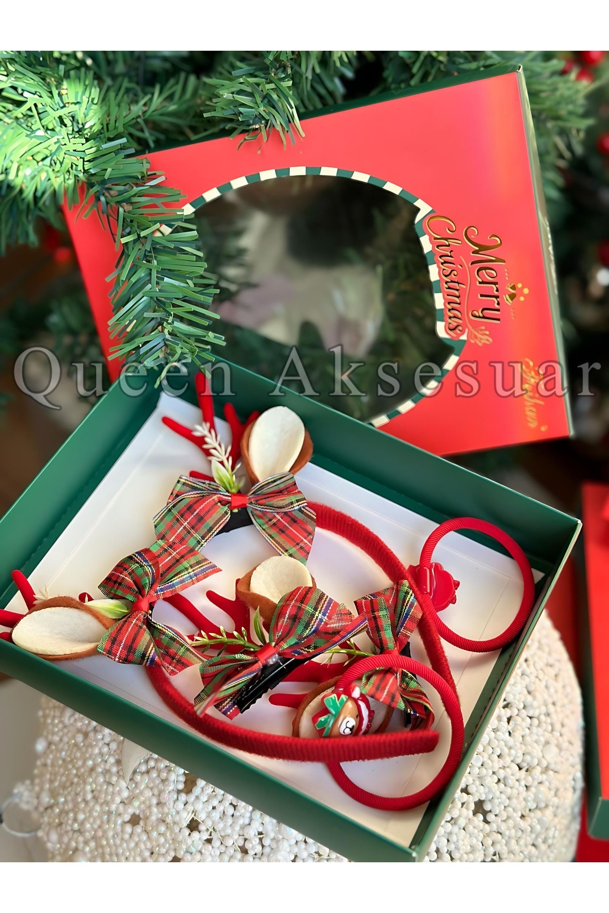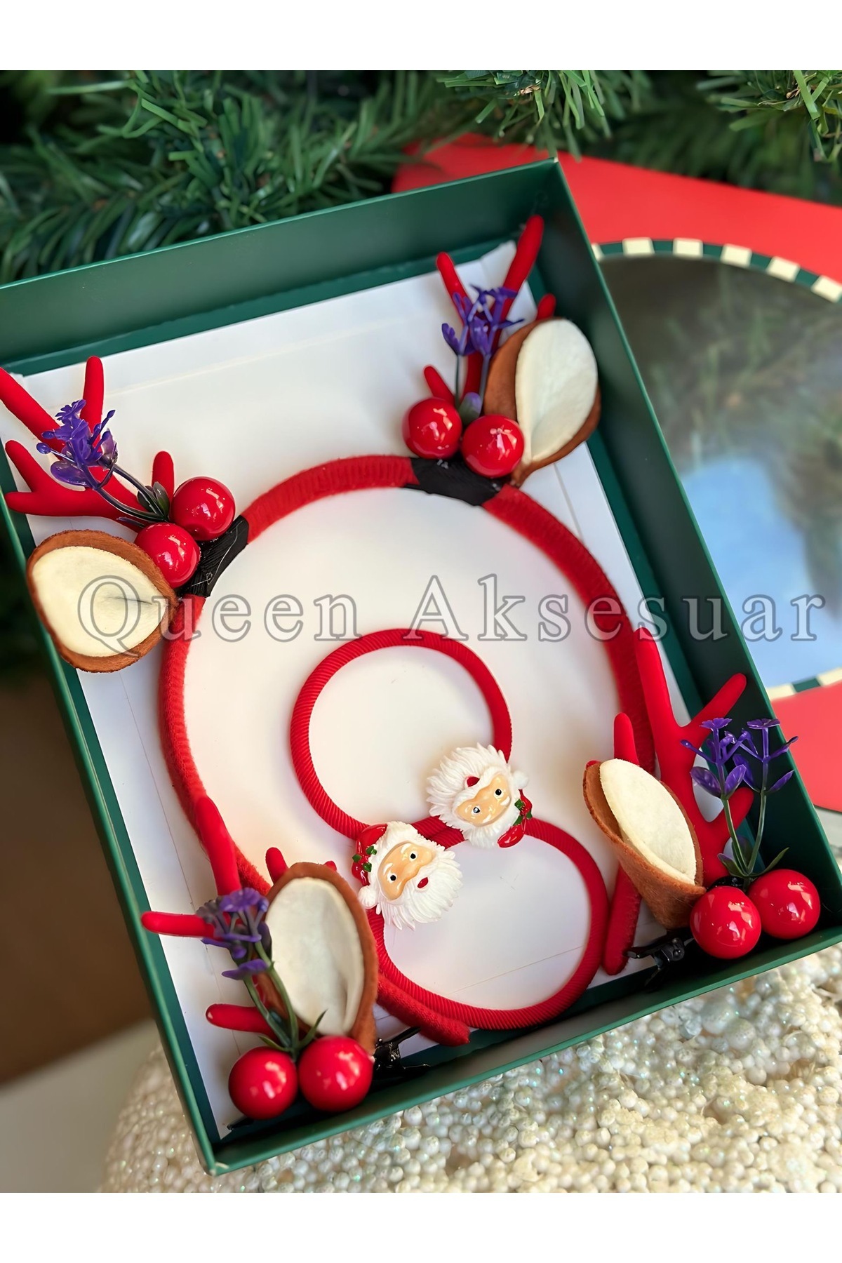 hediye kutulu yılbaşı seti taç lastik toka ponpon geyik boynuzlu kulaklı fiyonk Ayıcık süslü taçı hediye kutulu yılbaşı seti taç lastik toka ponpon geyik boynuzlu kulaklı fiyonk Ayıcık süslü taçı 0312202413 تک سایز