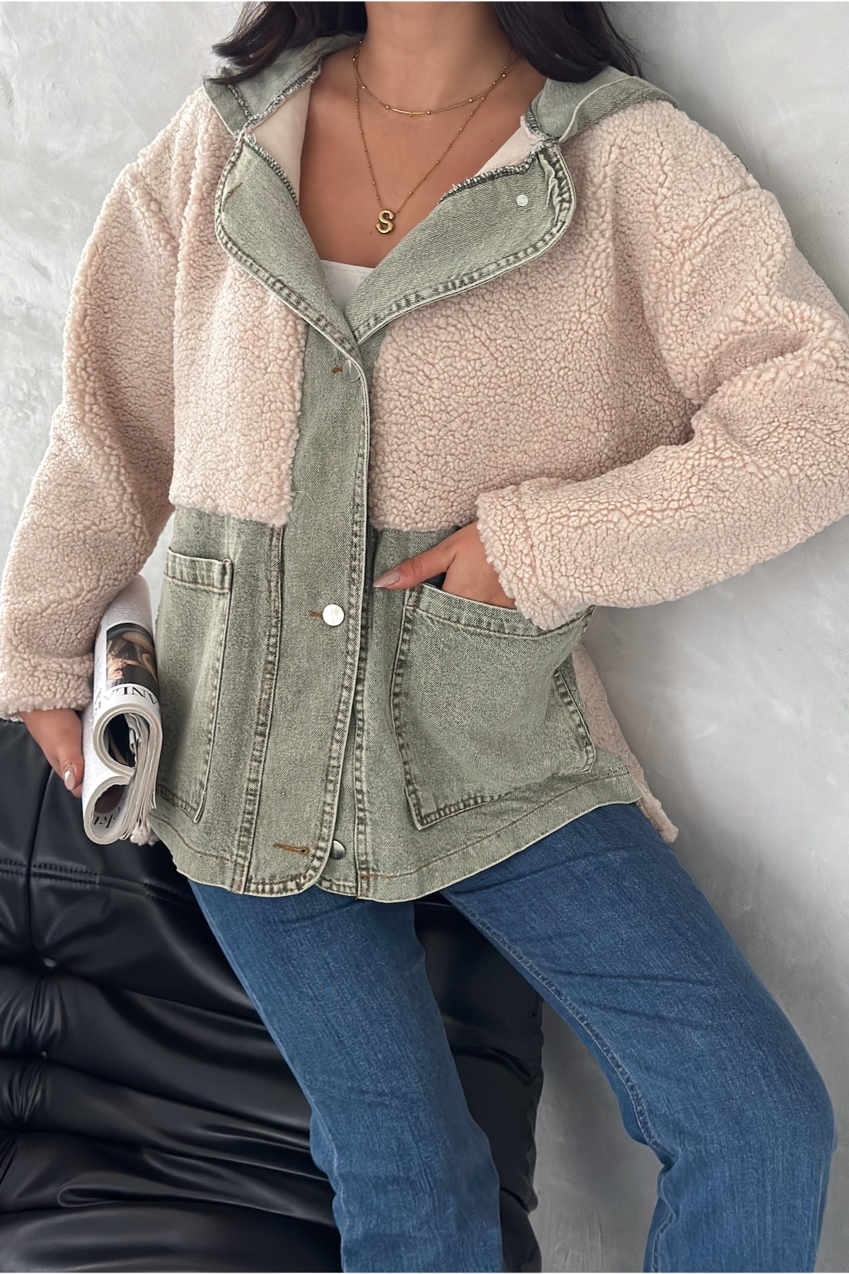 Kadın Haki Çıtçıt Düğme Kot Garnili Kapüşonlu Peluş Ceket Kadın Haki Çıtçıt Düğme Kot Garnili Kapüşonlu Peluş Ceket 14163 L
