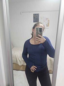 Elastanlı Lacivert Bluz Yüksek Bel Uzun Kollu Kare Yaka Örme Kumaş Bahar Sonbahar Kış Bluz Elastanlı Lacivert Bluz Yüksek Bel Uzun Kollu Kare Yaka Örme Kumaş Bahar Sonbahar Kış Bluz FLOWER3545 XL