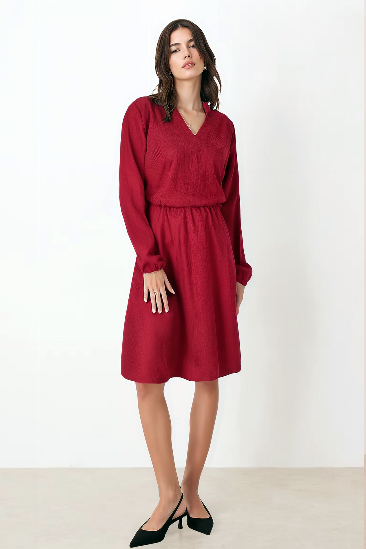 Kadın Siyah Kadife V Yaka Beli Lastikli İnce Fitilli Kloş Elbise ARM-25K001049 Kadın Siyah Kadife V Yaka Beli Lastikli İnce Fitilli Kloş Elbise ARM-25K001049 XL