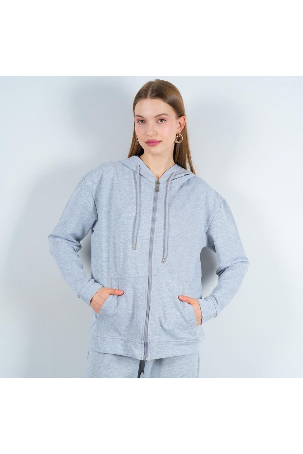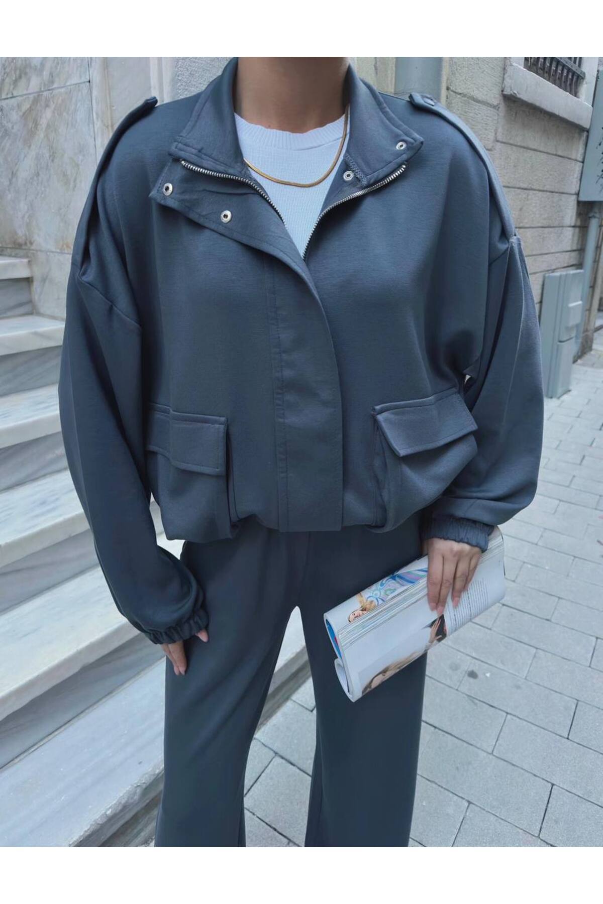 Metal Fermuarlı Çıtçıtlı Cepli Hırka Beli Lastikli Pantolon Kadın Alt-Üst Takım Metal Fermuarlı Çıtçıtlı Cepli Hırka Beli Lastikli Pantolon Kadın Alt-Üst Takım CELİTA2011 L