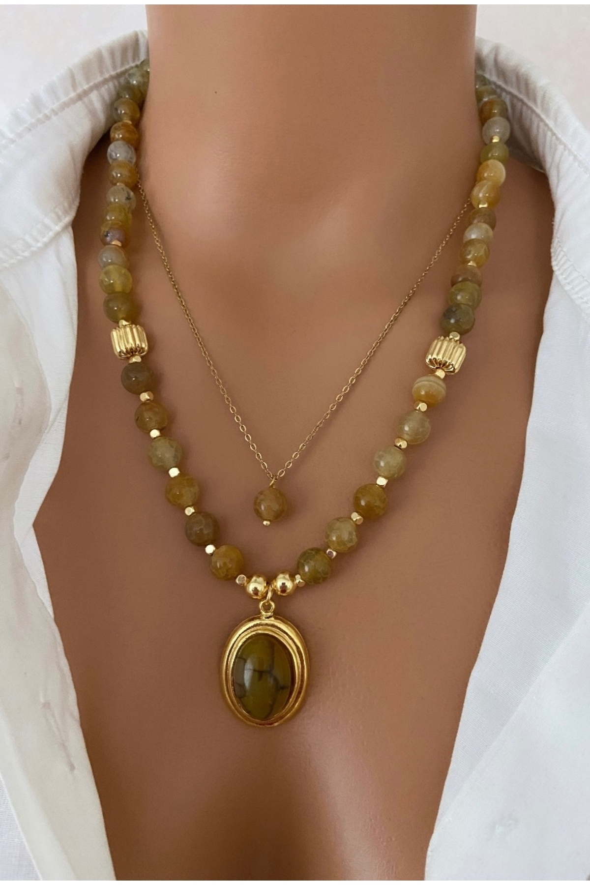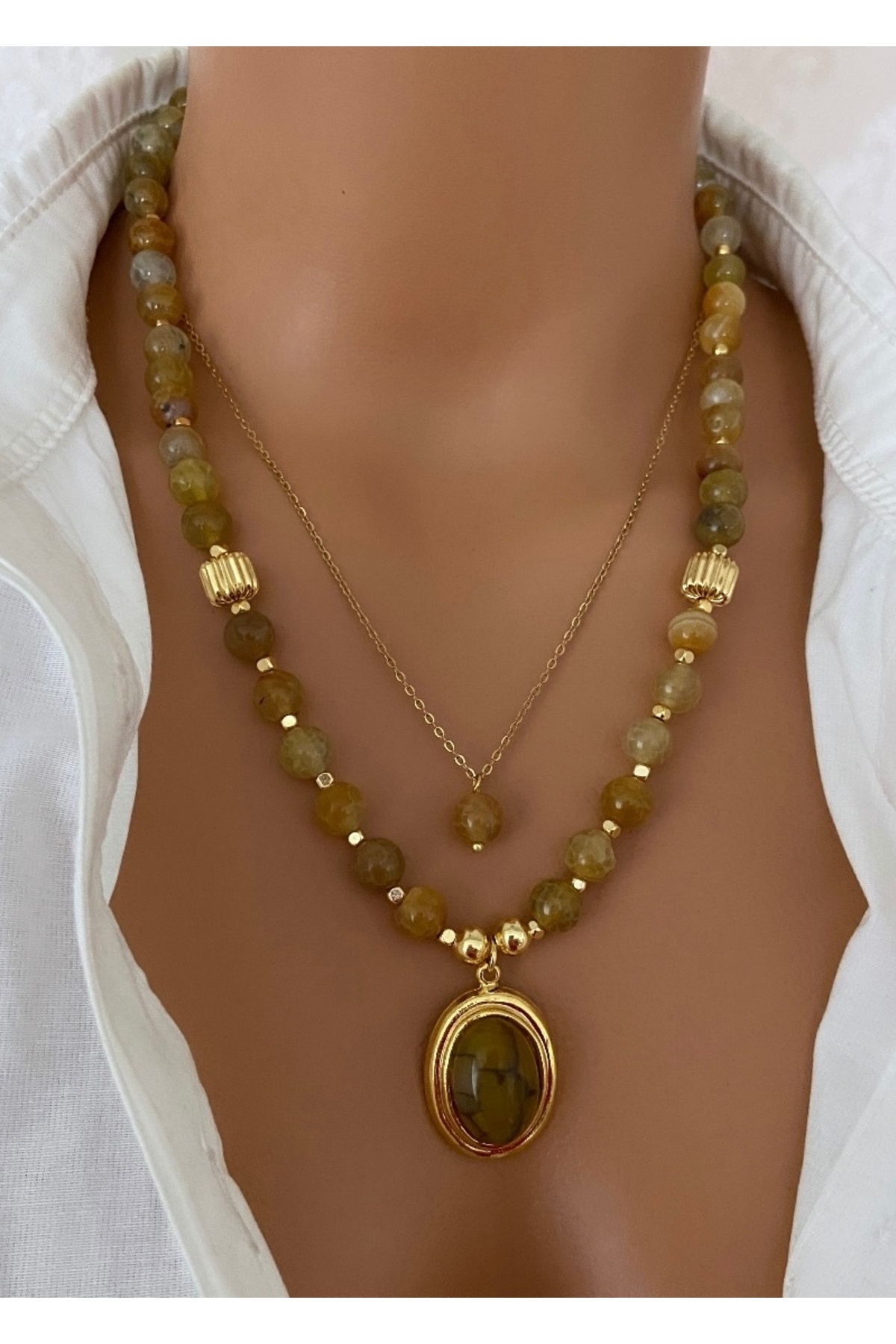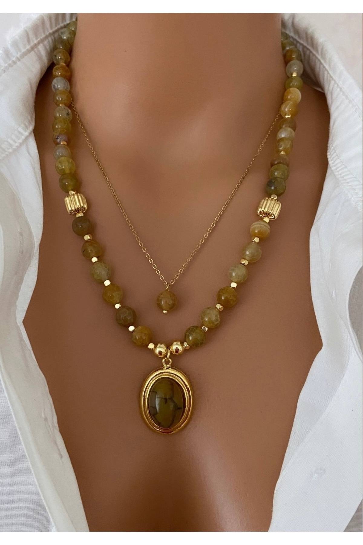 ( 2 KOLYE ) Doğal Taş Alacalı Akik Sarı Çelik Zincir Altın Kaplama Çerçeveli Taş Uç Özel Kadın Kolye ( 2 KOLYE ) Doğal Taş Alacalı Akik Sarı Çelik Zincir Altın Kaplama Çerçeveli Taş Uç Özel Kadın Kolye alacalısarıkuvarskolyeseti M