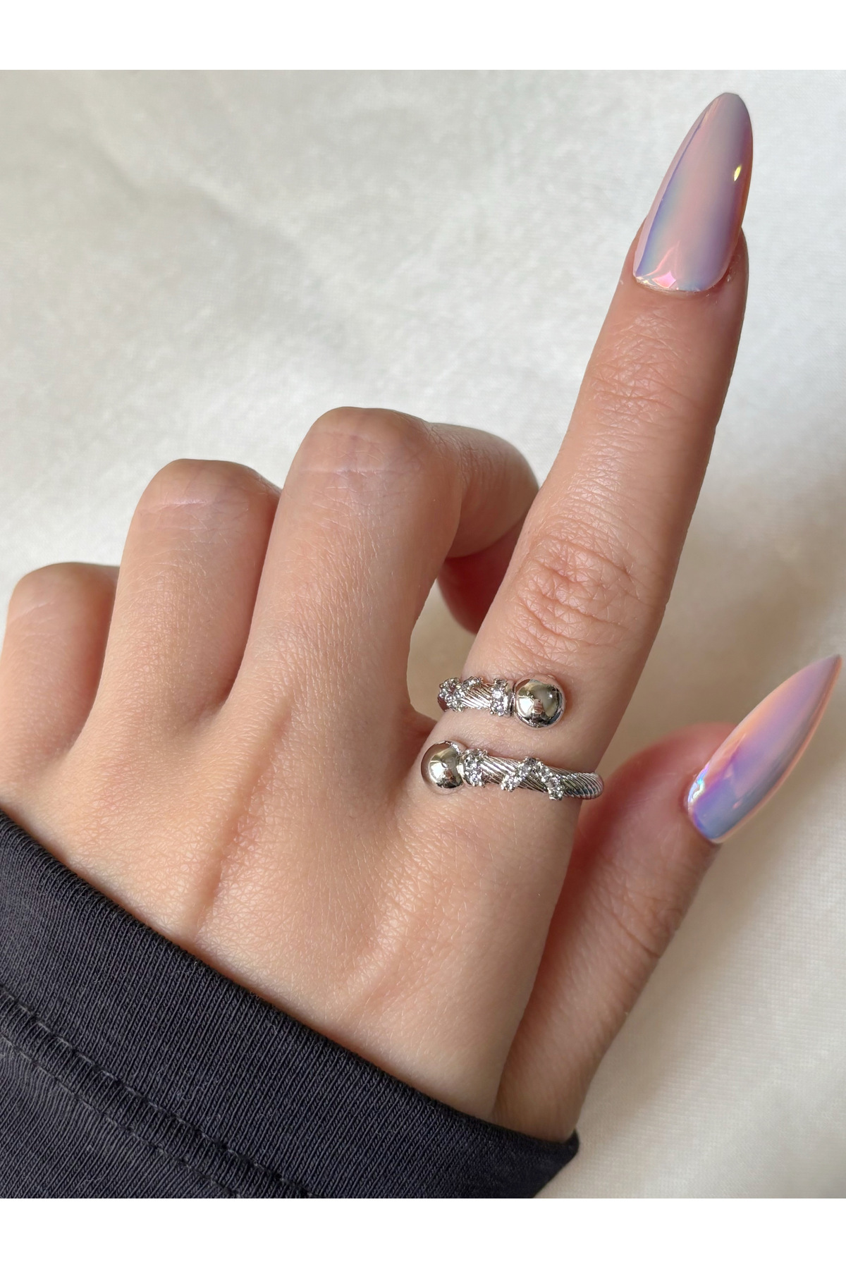 Kadın Gümüş Renk Taşlı Ucu Toplu Sarmal Yüzük Kadın Gümüş Renk Taşlı Ucu Toplu Sarmal Yüzük ysx455 تک سایز