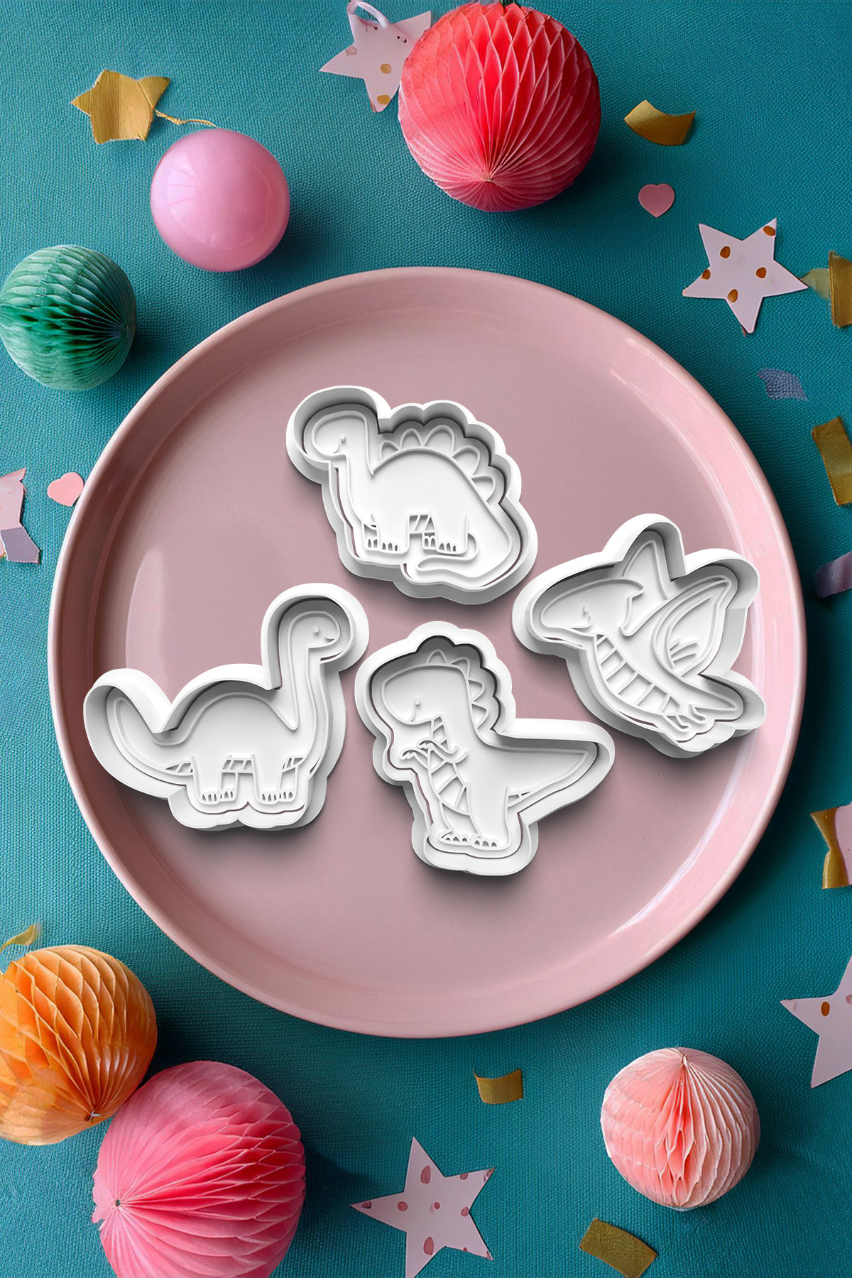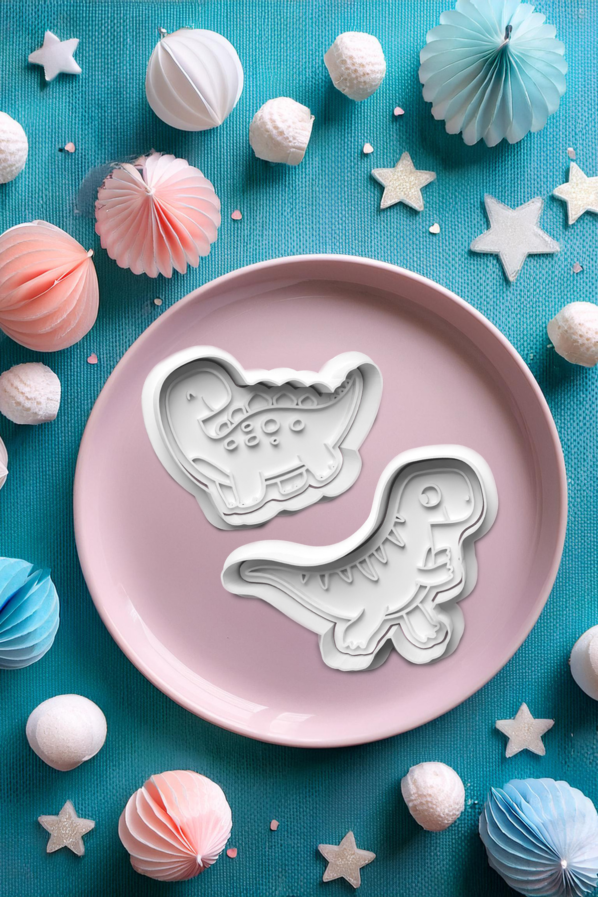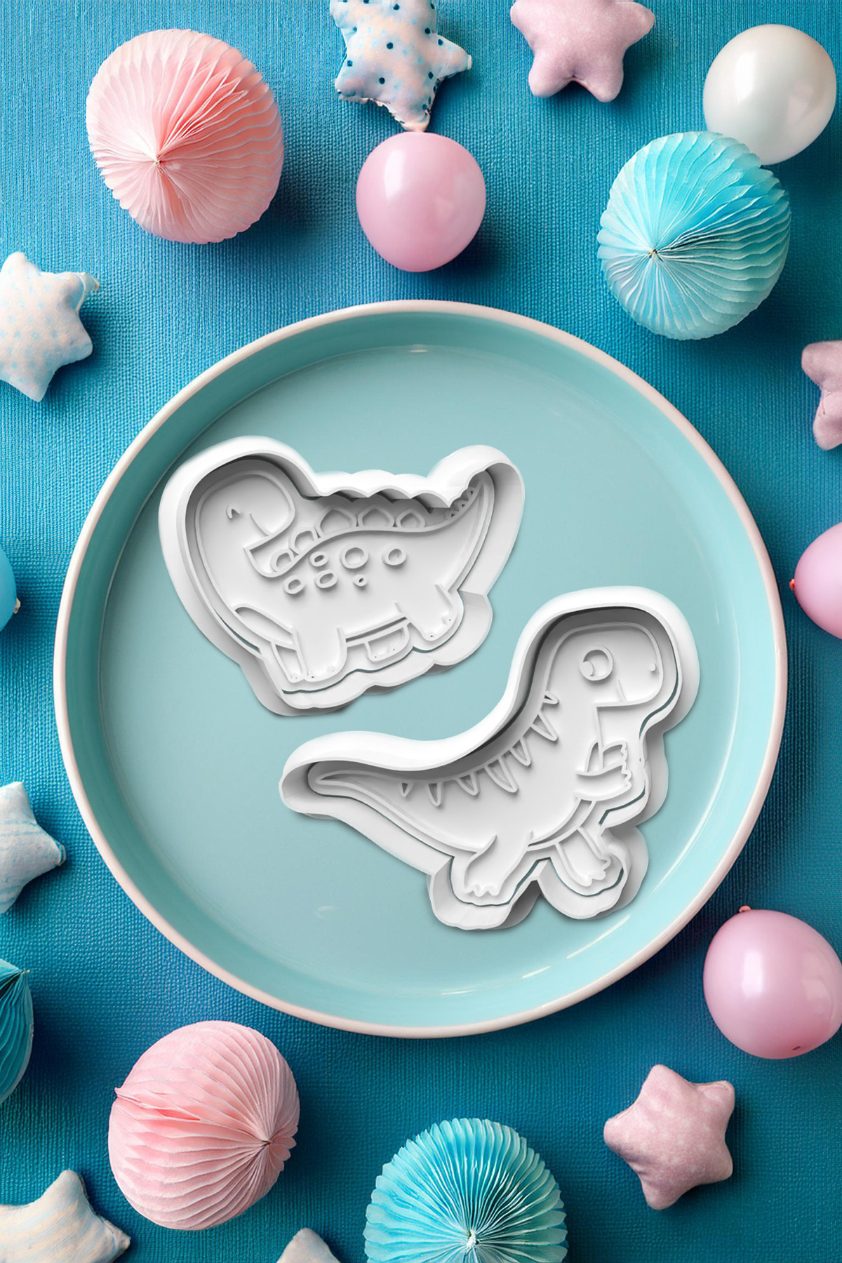 Sevimli Dinazor Çocuk 2'li Kurabiye Kalıbı Kesici Hamur Şekillendirici Seti