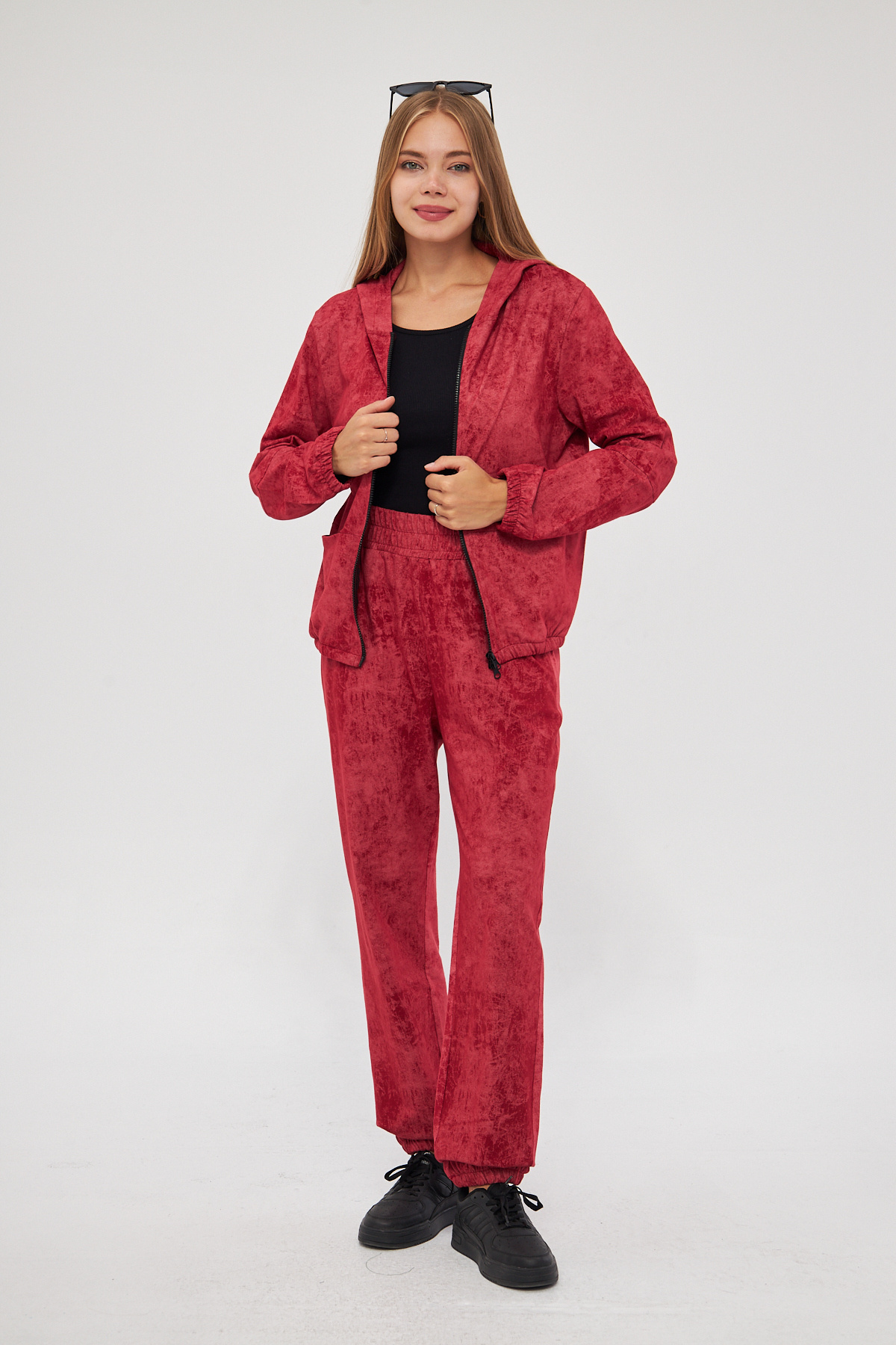 Kadın Asit Yıkama Efektli Batik Desen Önü Fermuarlı Etek Kol Lastikli Kapüşonlu Eşofman Takımı Kadın Asit Yıkama Efektli Batik Desen Önü Fermuarlı Etek Kol Lastikli Kapüşonlu Eşofman Takımı Esp-e00188 2XL