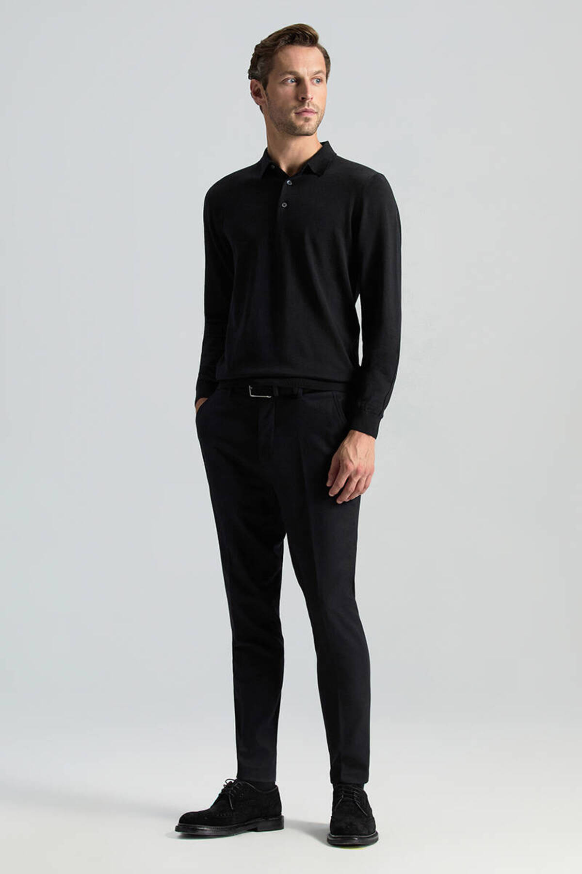 Merino Yün Polo Yaka Siyah Kazak Merino Yün Polo Yaka Siyah Kazak IC1227|001 3XL
