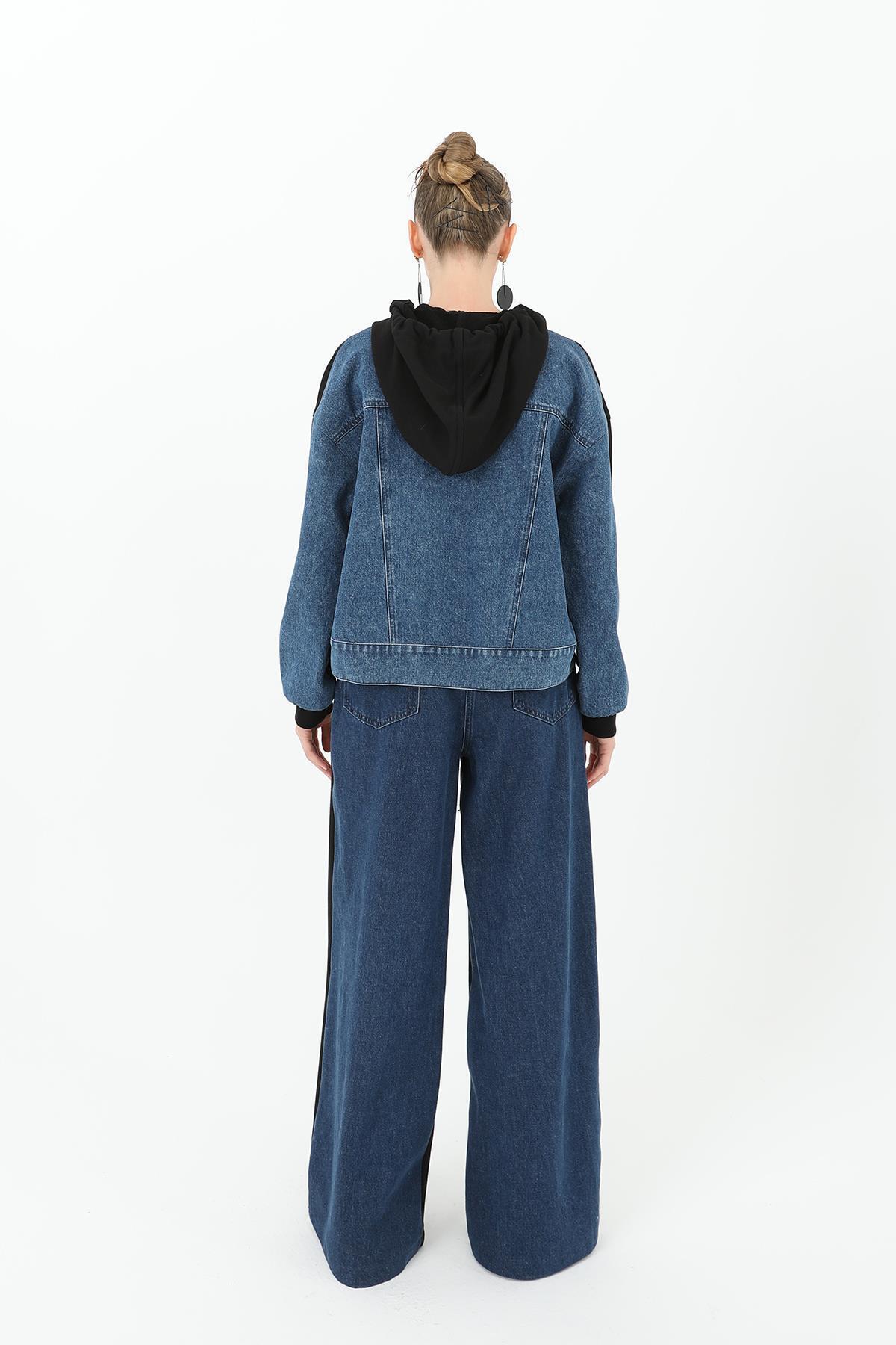 Kadın Arkası Kot Önü Triko Geçişli Geniş Paça Pantolon - 31992PNT - Siyah-Mavi Kadın Arkası Kot Önü Triko Geçişli Geniş Paça Pantolon - 31992PNT - Siyah-Mavi 24W-31992PNT XL