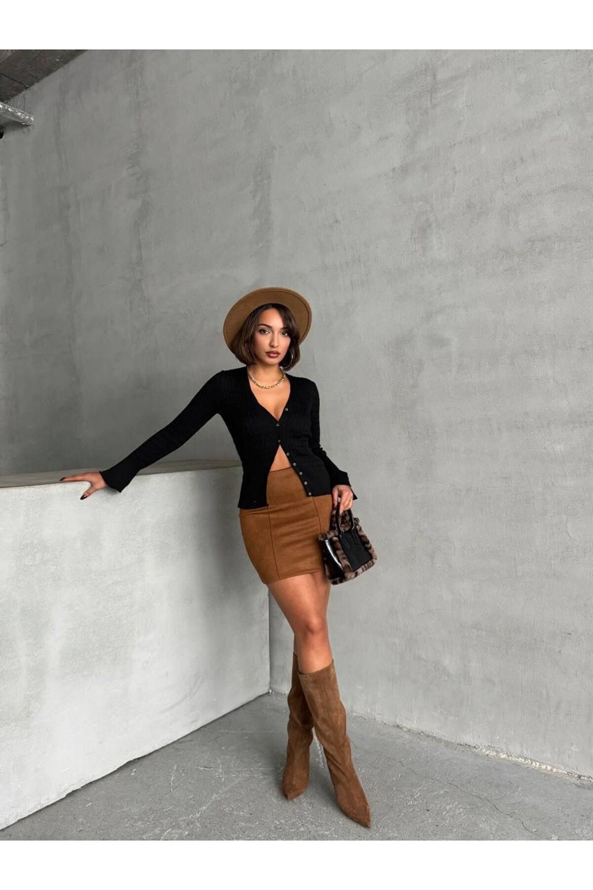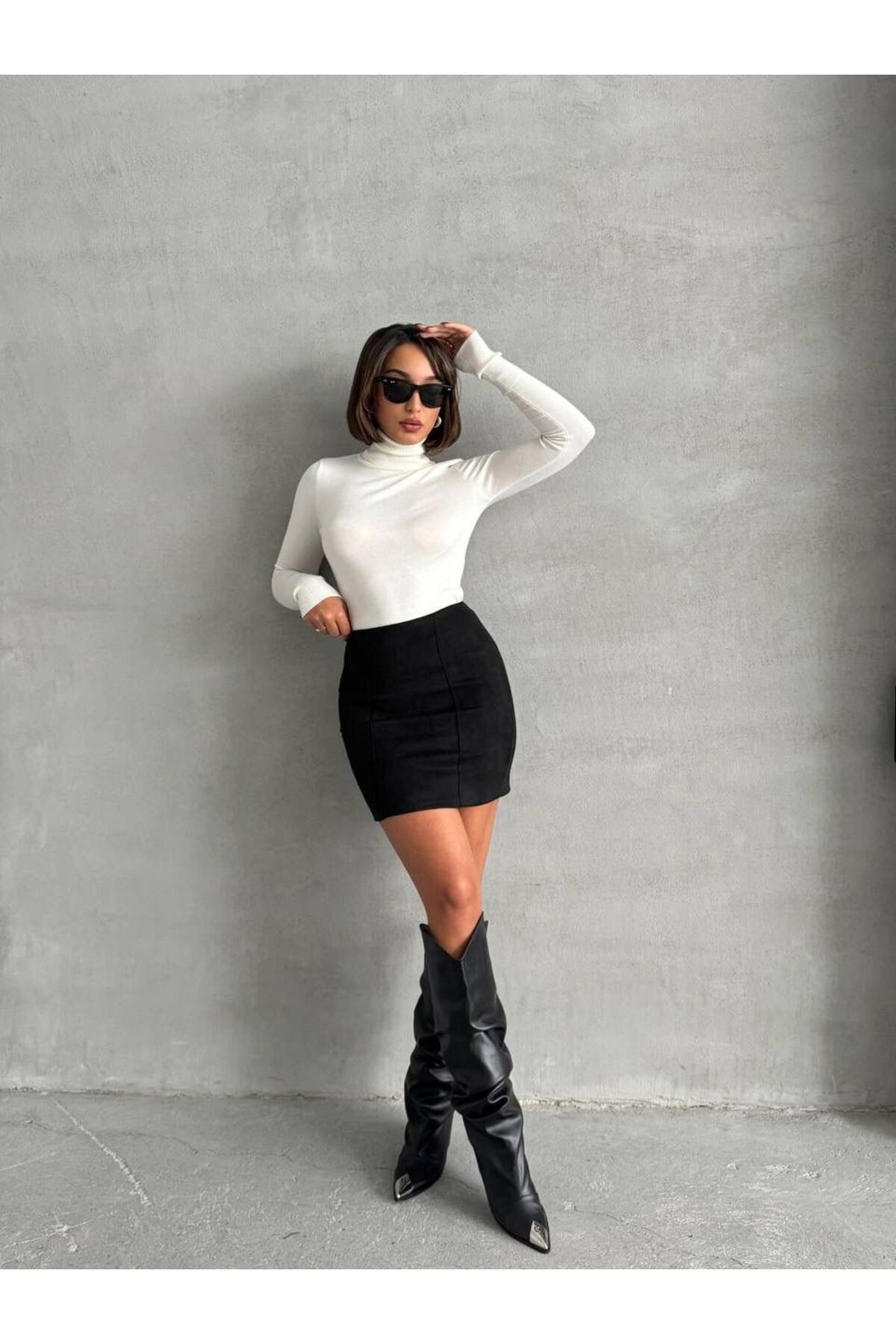Yüksek Bel Süet Mini Etek Yüksek Bel Süet Mini Etek PZG241011 L