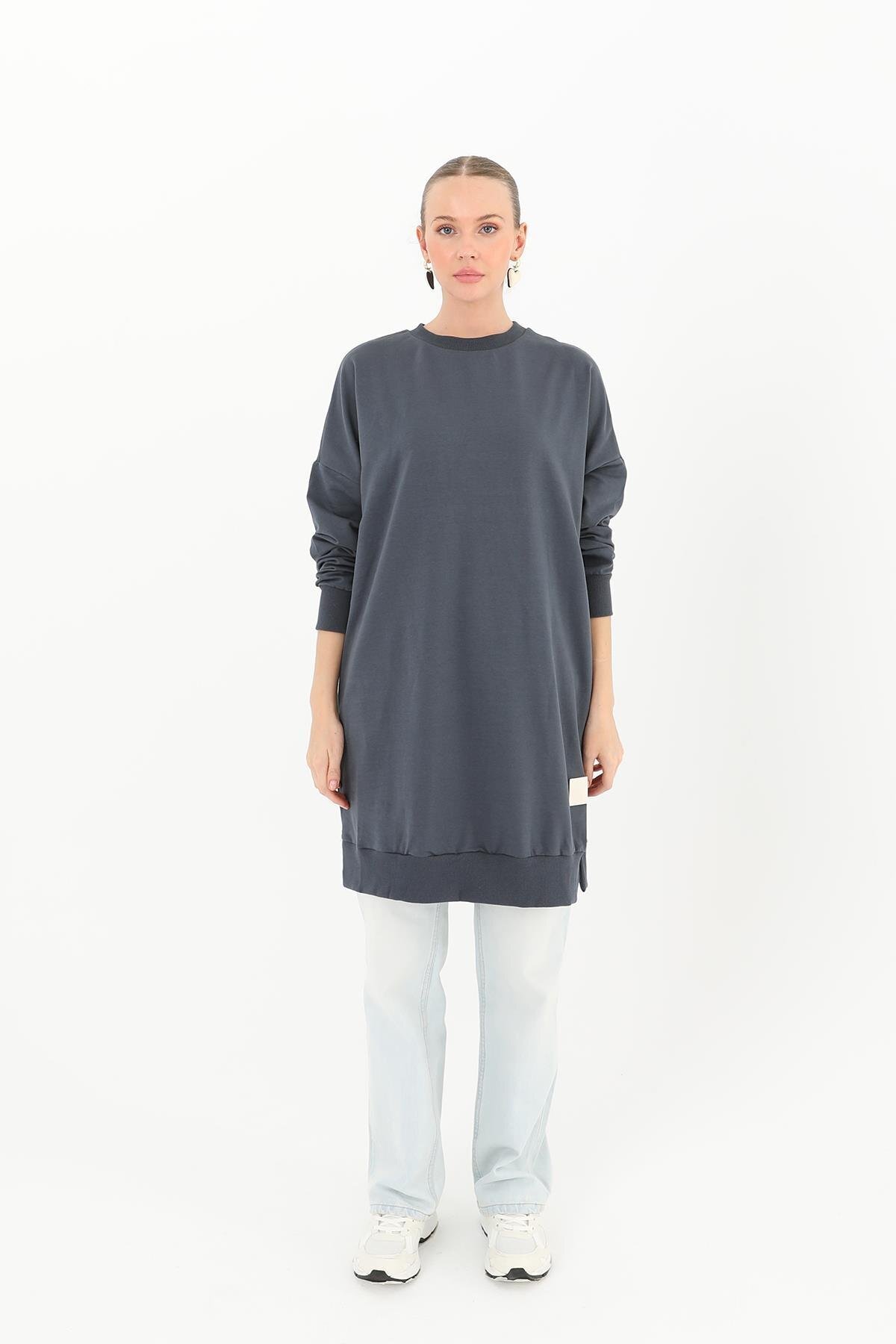 Kadın Ribanalı Yırtmaç Detaylı Basic Tunik - 30644TUN - Lacivert Kadın Ribanalı Yırtmaç Detaylı Basic Tunik - 30644TUN - Lacivert L/XL