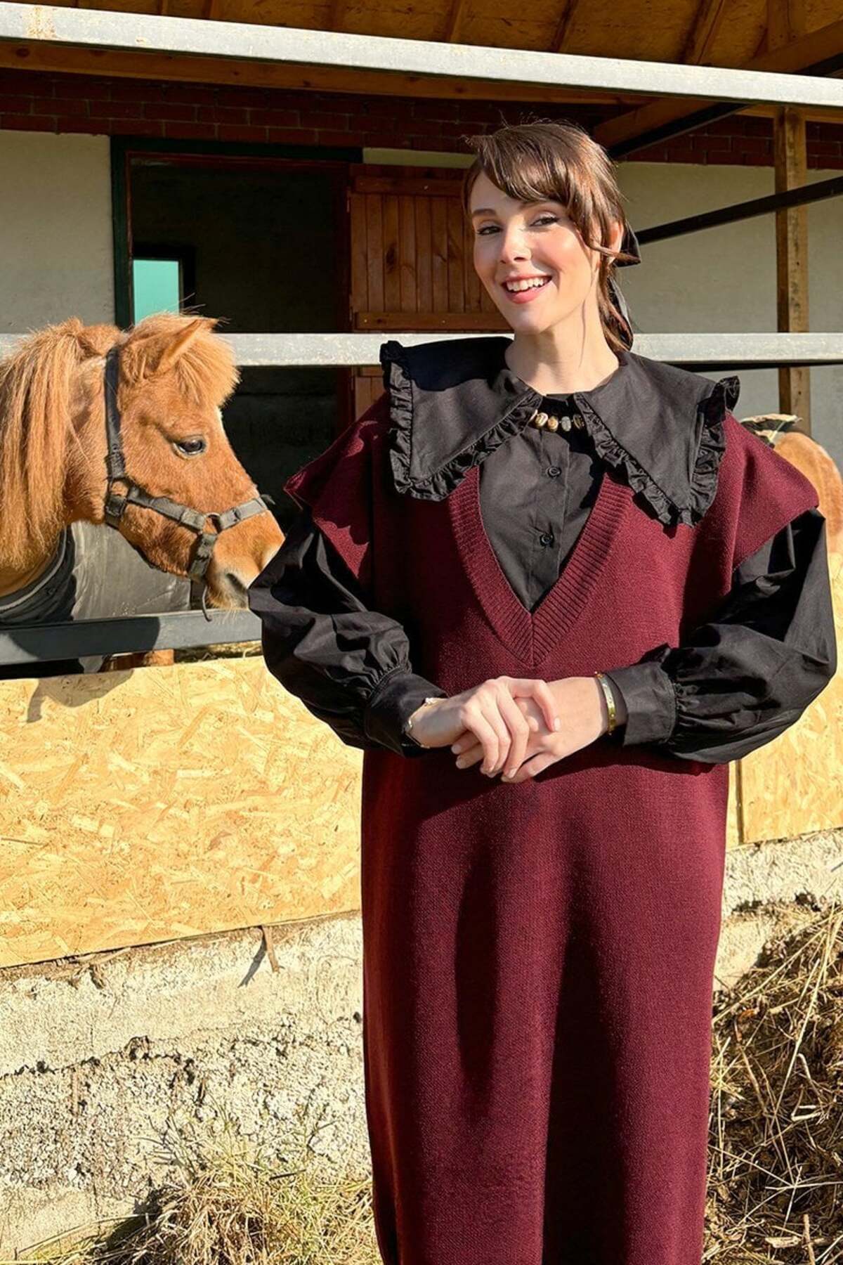 Bordo Triko Jile & Siyah Yakası Fırfırlı Crop Gömlek Takım Bordo Triko Jile & Siyah Yakası Fırfırlı Crop Gömlek Takım TRKOJILEYKSFRFRLCRPGMLK Standart