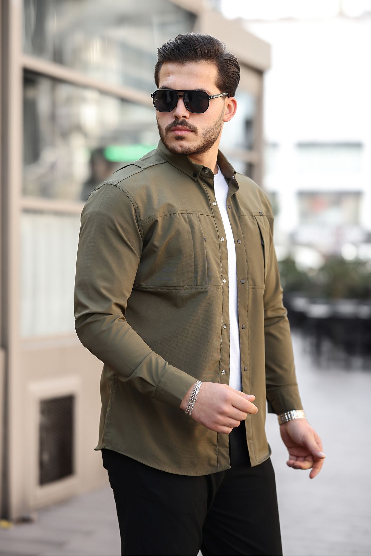 Erkek Gizli Cep Paraşüt Kumaş Gömlek Erkek Gizli Cep Paraşüt Kumaş Gömlek E0203-51 2XL