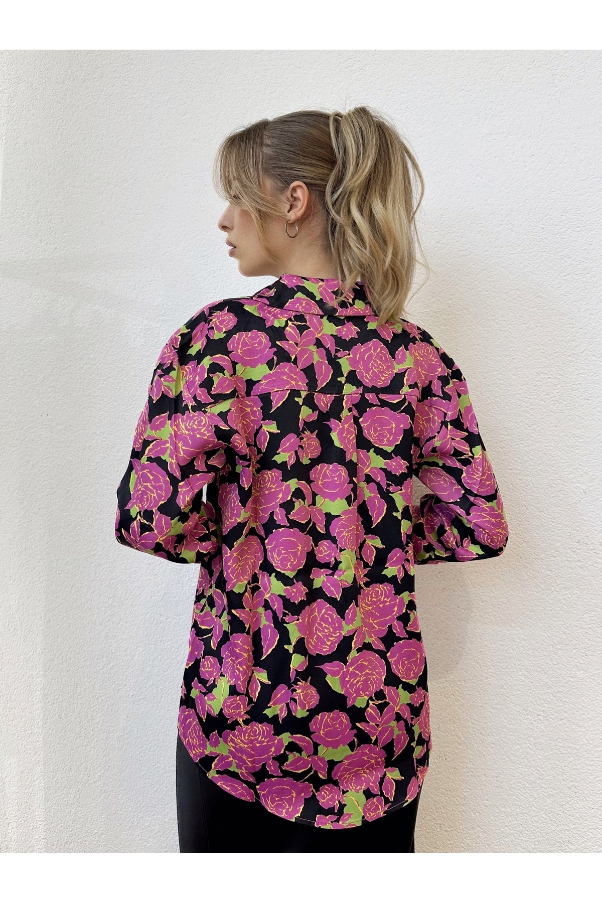 Çiçek Desenli Pembe Saten Gömlek Çiçek Desenli Pembe Saten Gömlek P78S9016 L