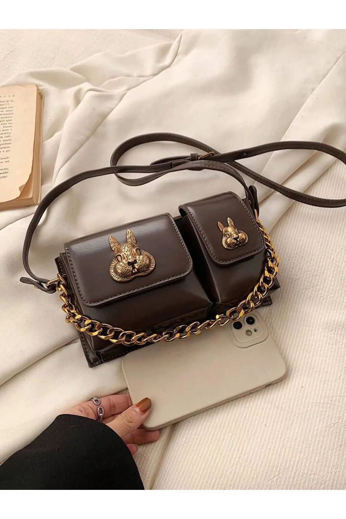 Kadın Kahverengi Sincap Aksesuar Detaylı Tasarım Baget Çanta Kadın Kahverengi Sincap Aksesuar Detaylı Tasarım Baget Çanta SNC890020 تک سایز
