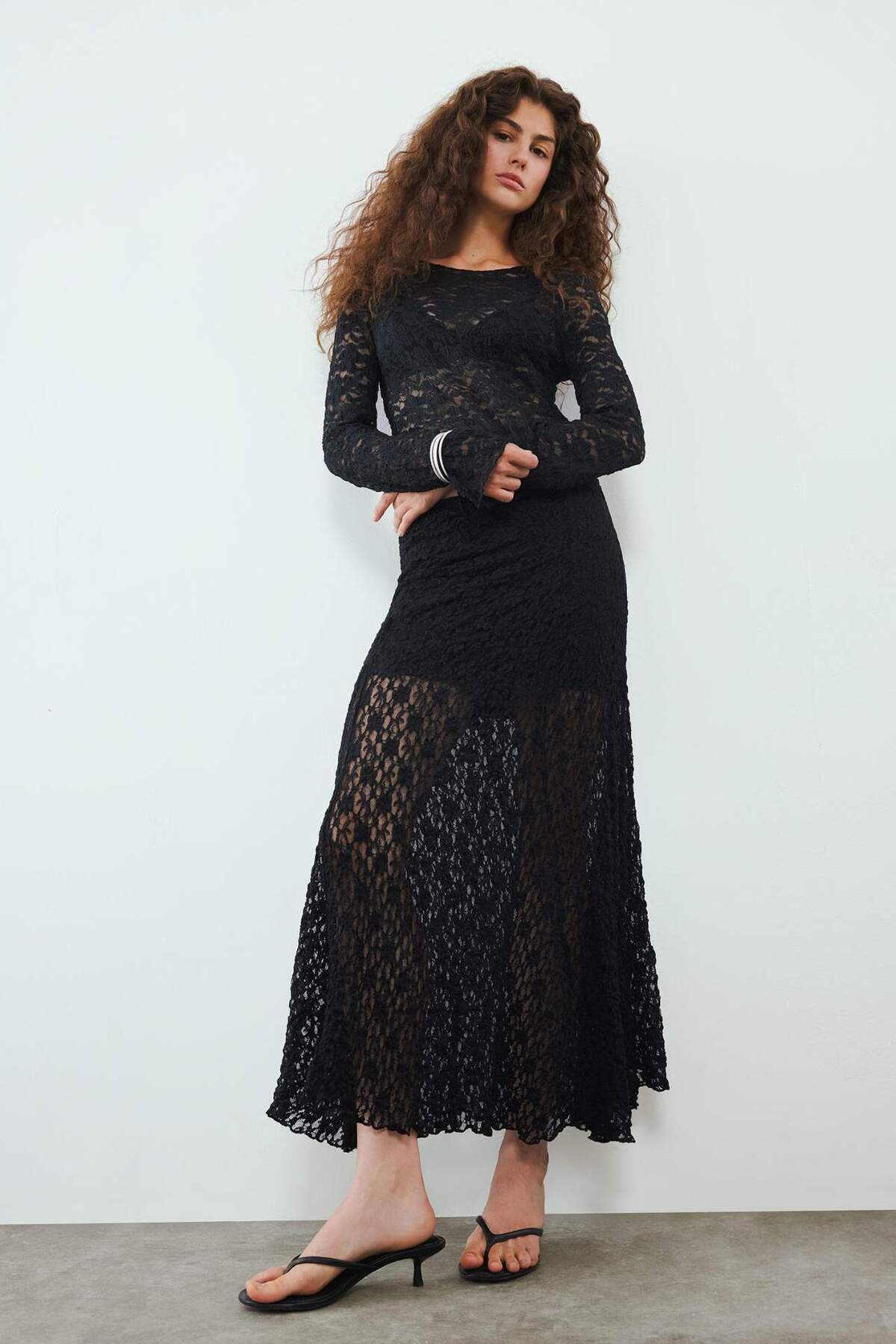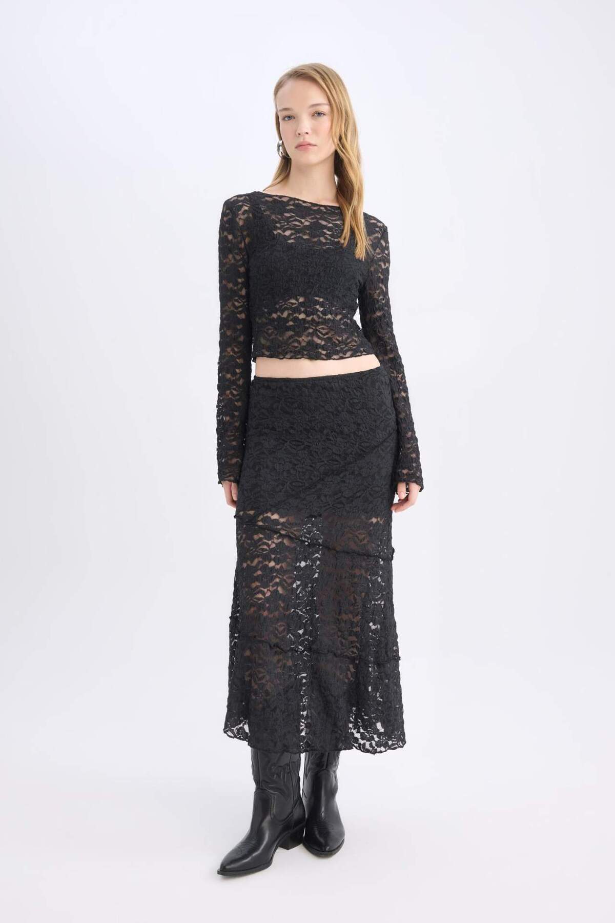 Siyah Dantel Astarlı Maksi Boy Etek Siyah Dantel Astarlı Maksi Boy Etek K01280DNTQ XL