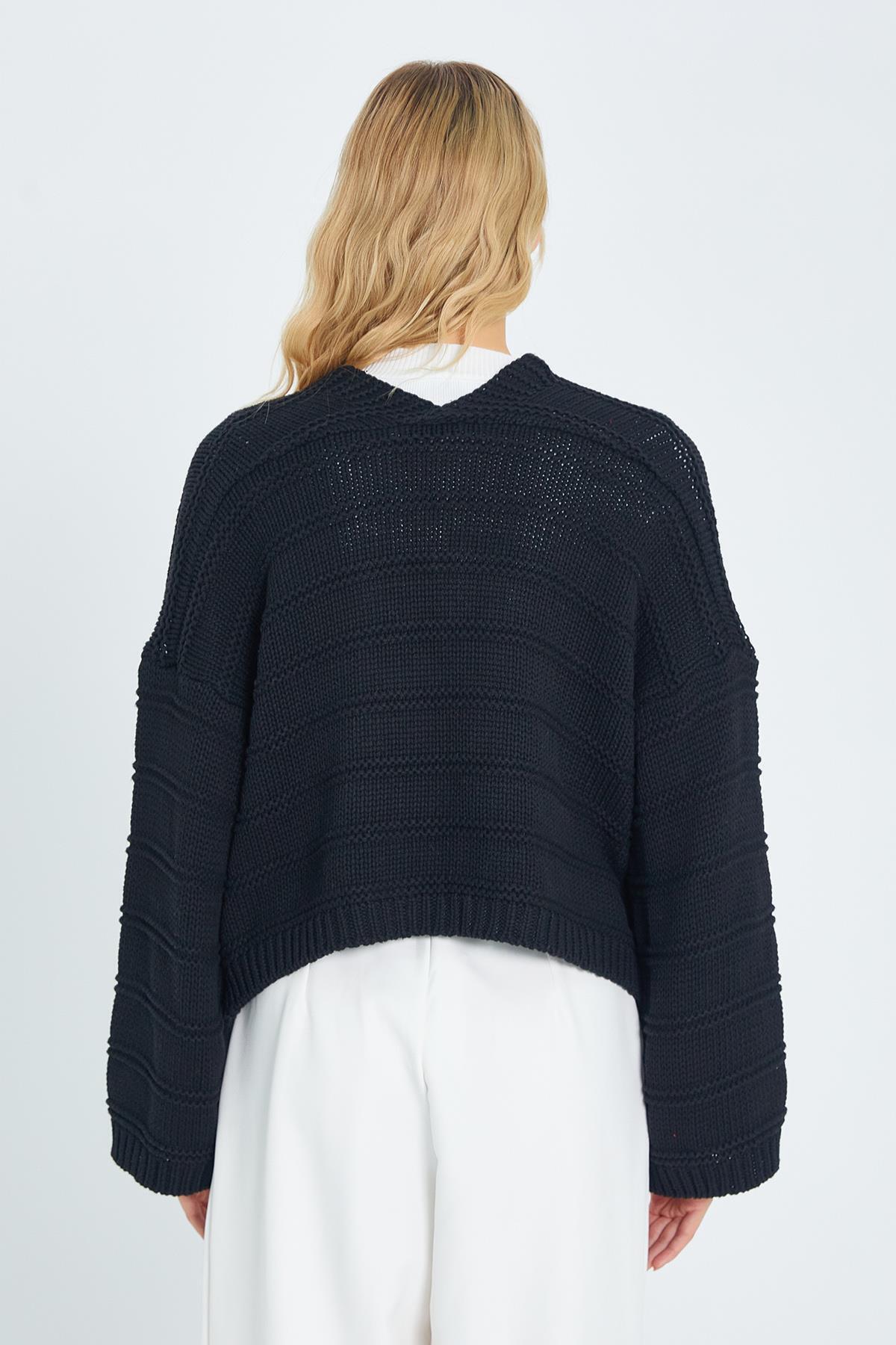 6904 Kadın Geniş Kol Detaylı Triko Hırka Siyah 6904 Kadın Geniş Kol Detaylı Triko Hırka Siyah K24HRK6904 Standart