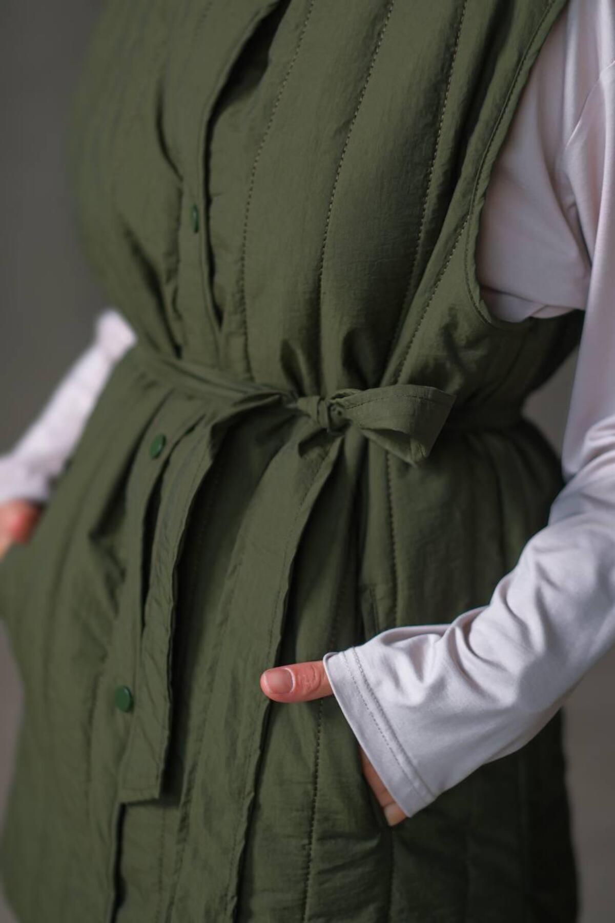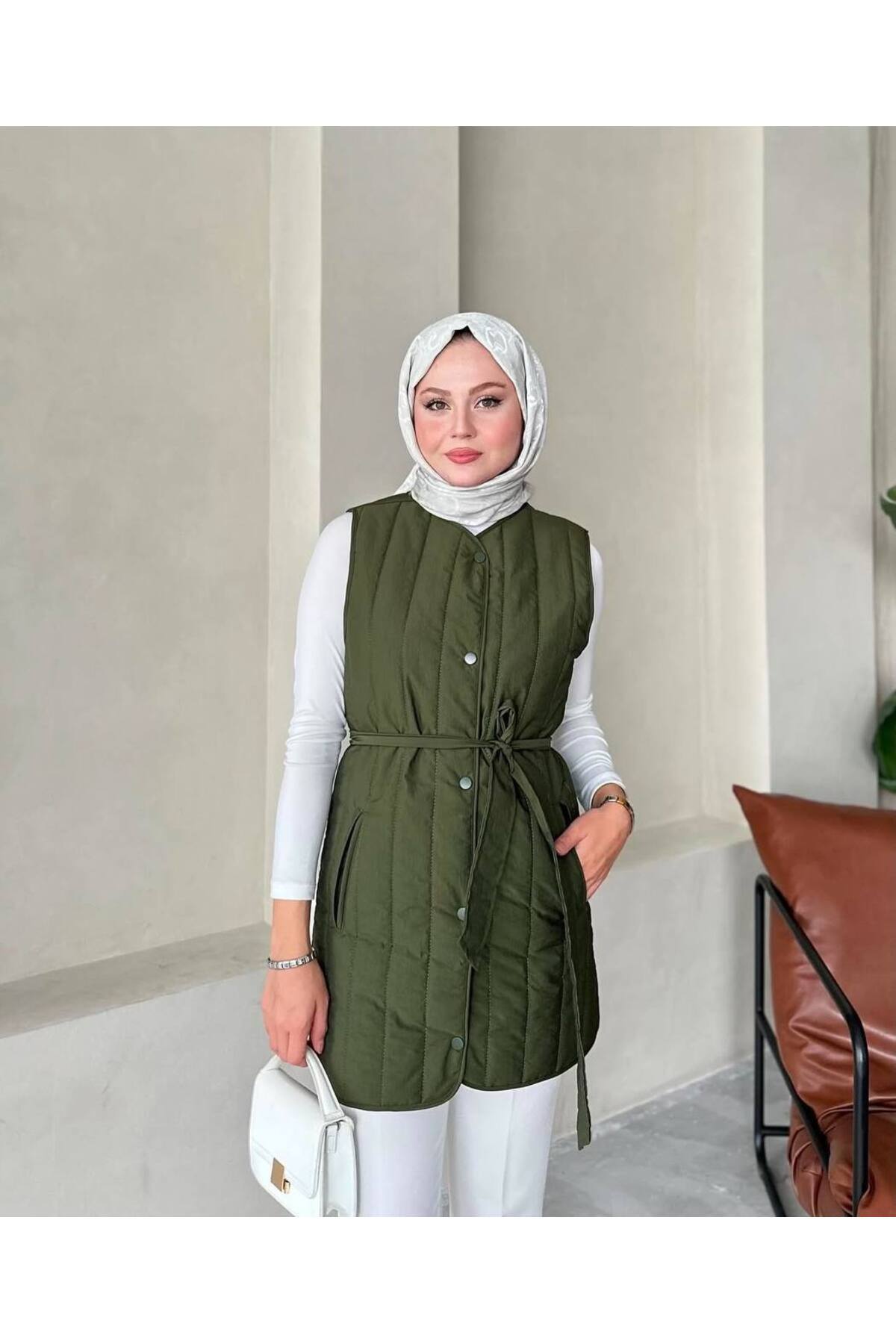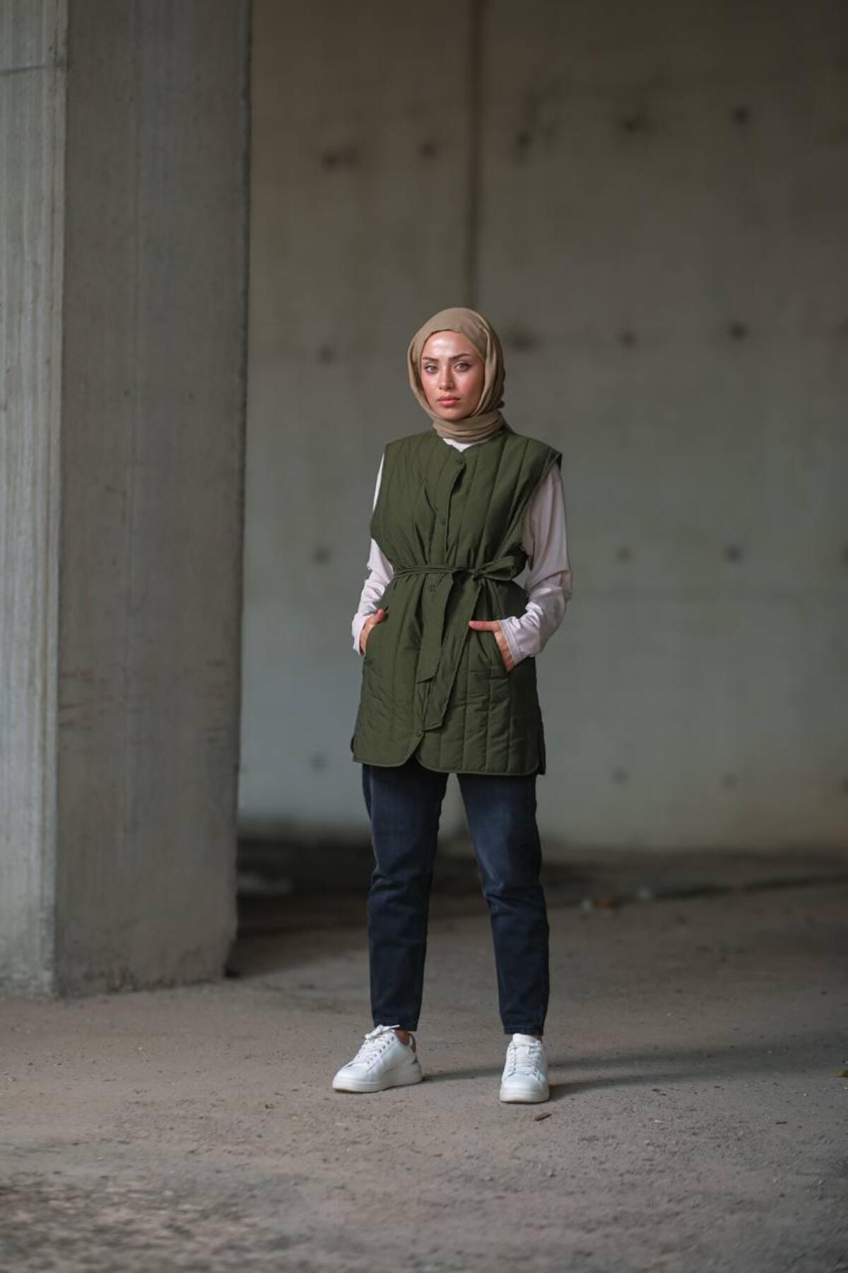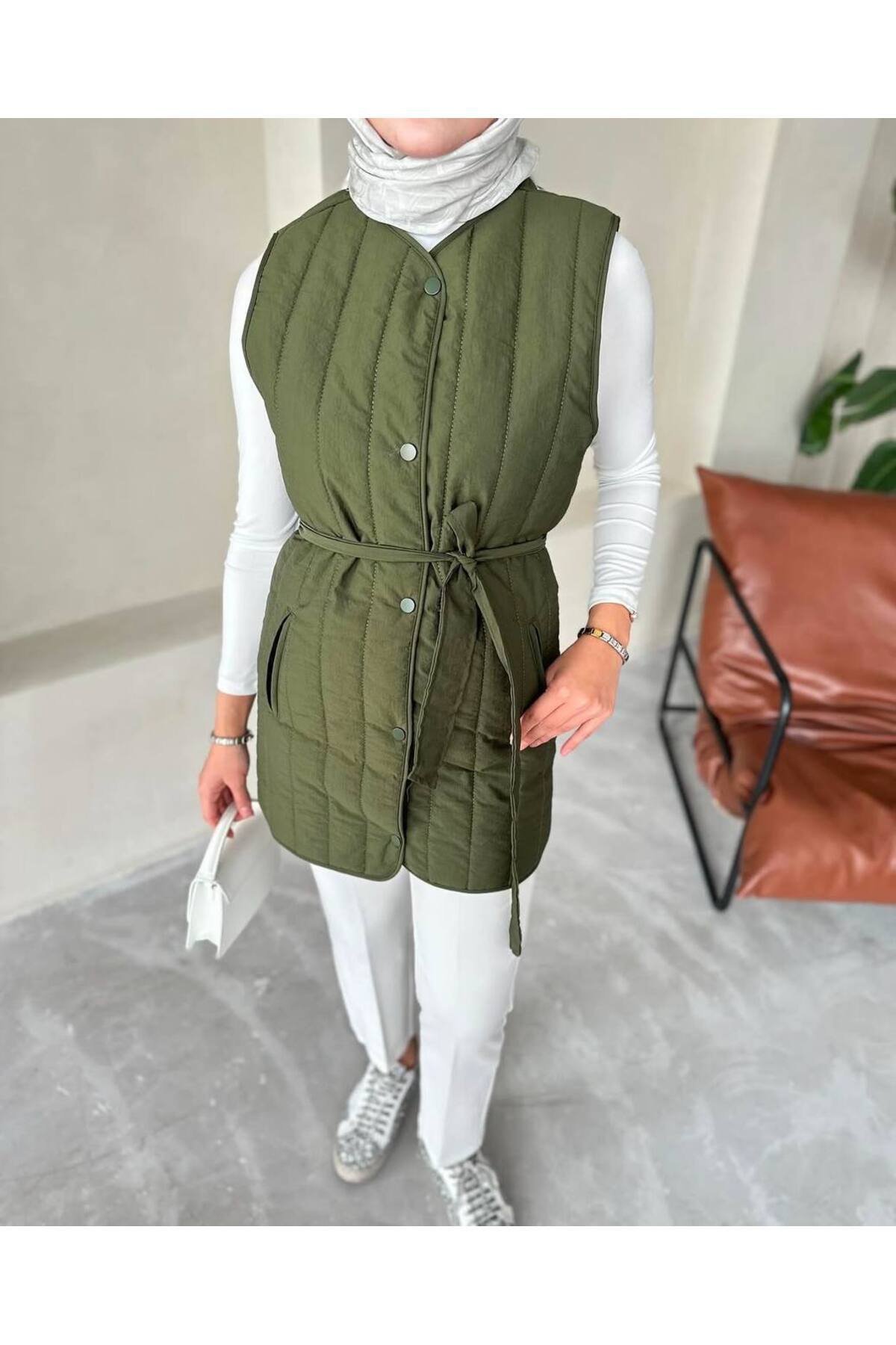 Kadın Midi Boy Kapitone Kuşaklı Yelek Kadın Midi Boy Kapitone Kuşaklı Yelek 244121901 2