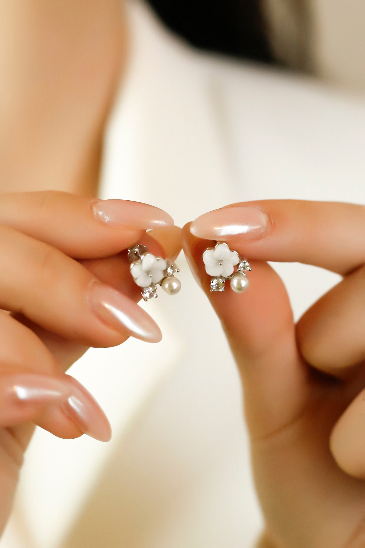 İncili Manolya Çiçeği Rodyumlu Çivili Gümüş Küpe İncili Manolya Çiçeği Rodyumlu Çivili Gümüş Küpe SARİASLTSÇ465 10 MM