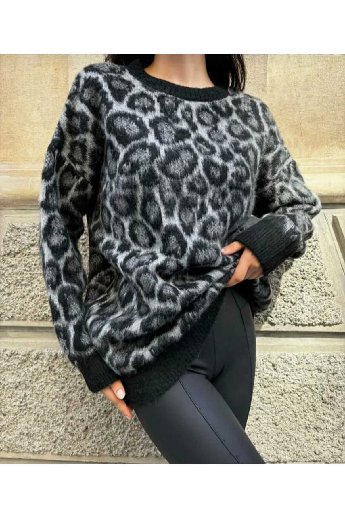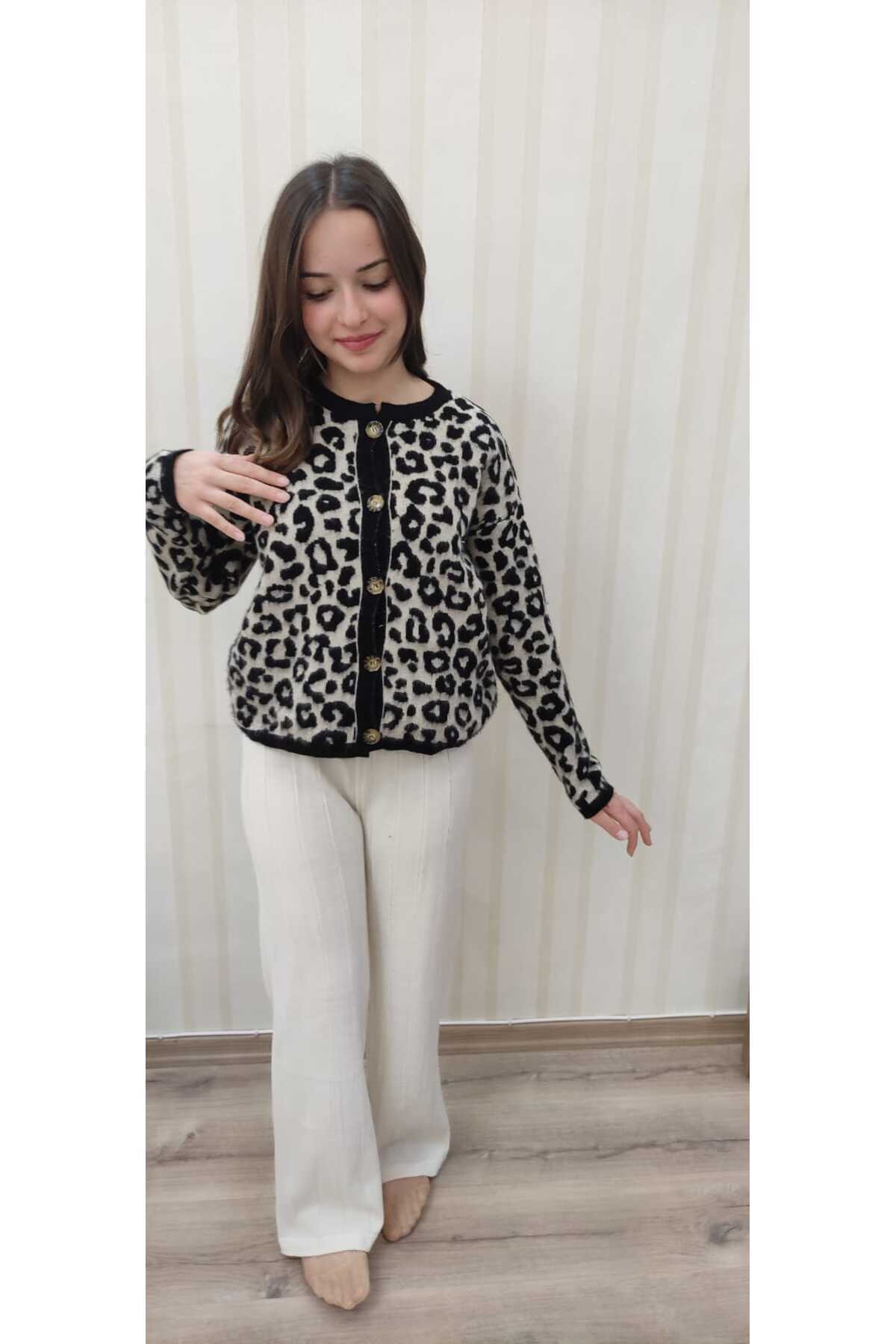 Bisiklet Yaka Şardonlu Leopar Triko Kazak Bisiklet Yaka Şardonlu Leopar Triko Kazak 2223 Standart